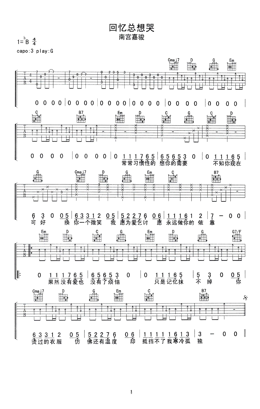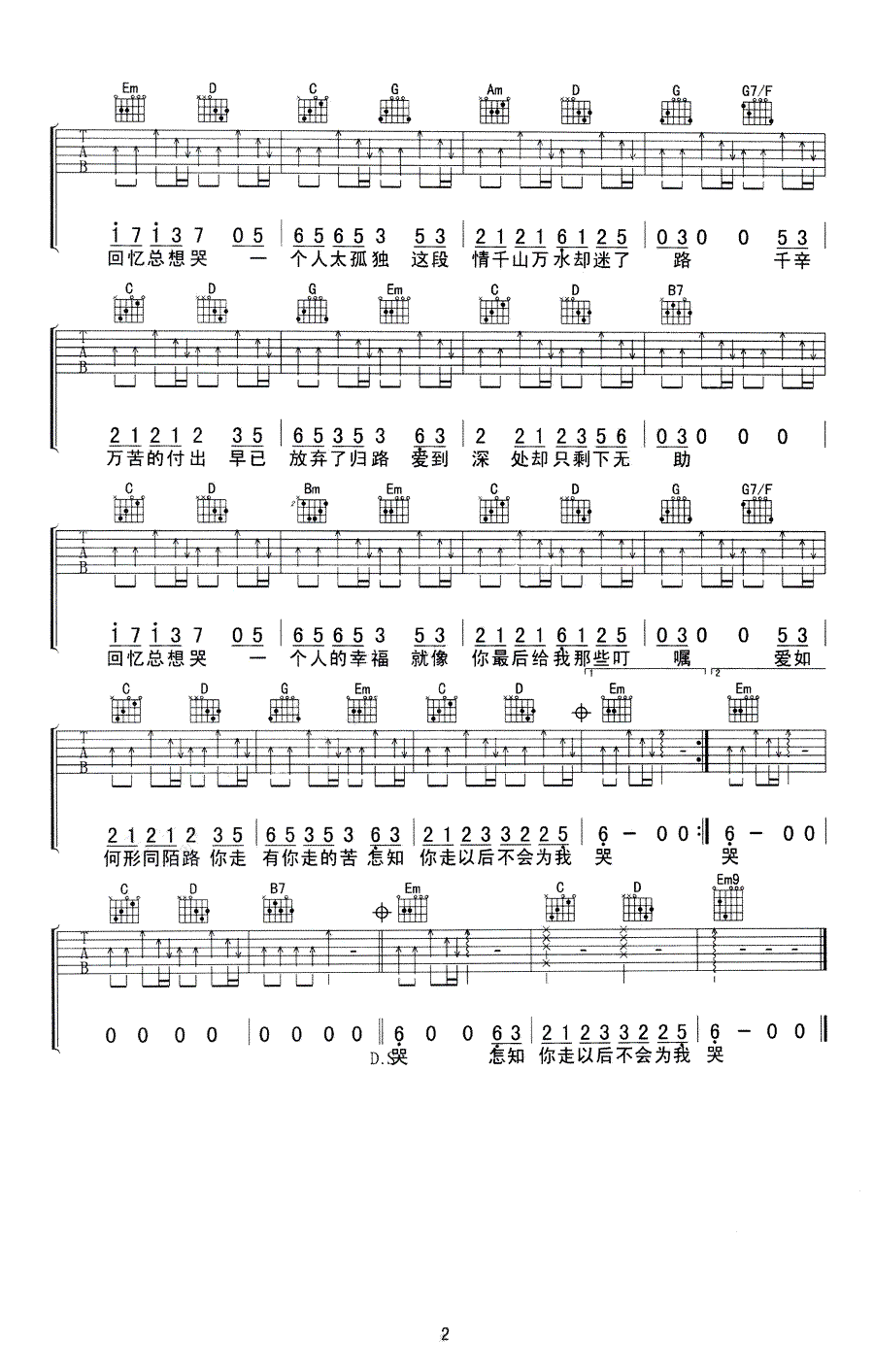 吉他谱 | 热门弹唱《回忆总想哭》