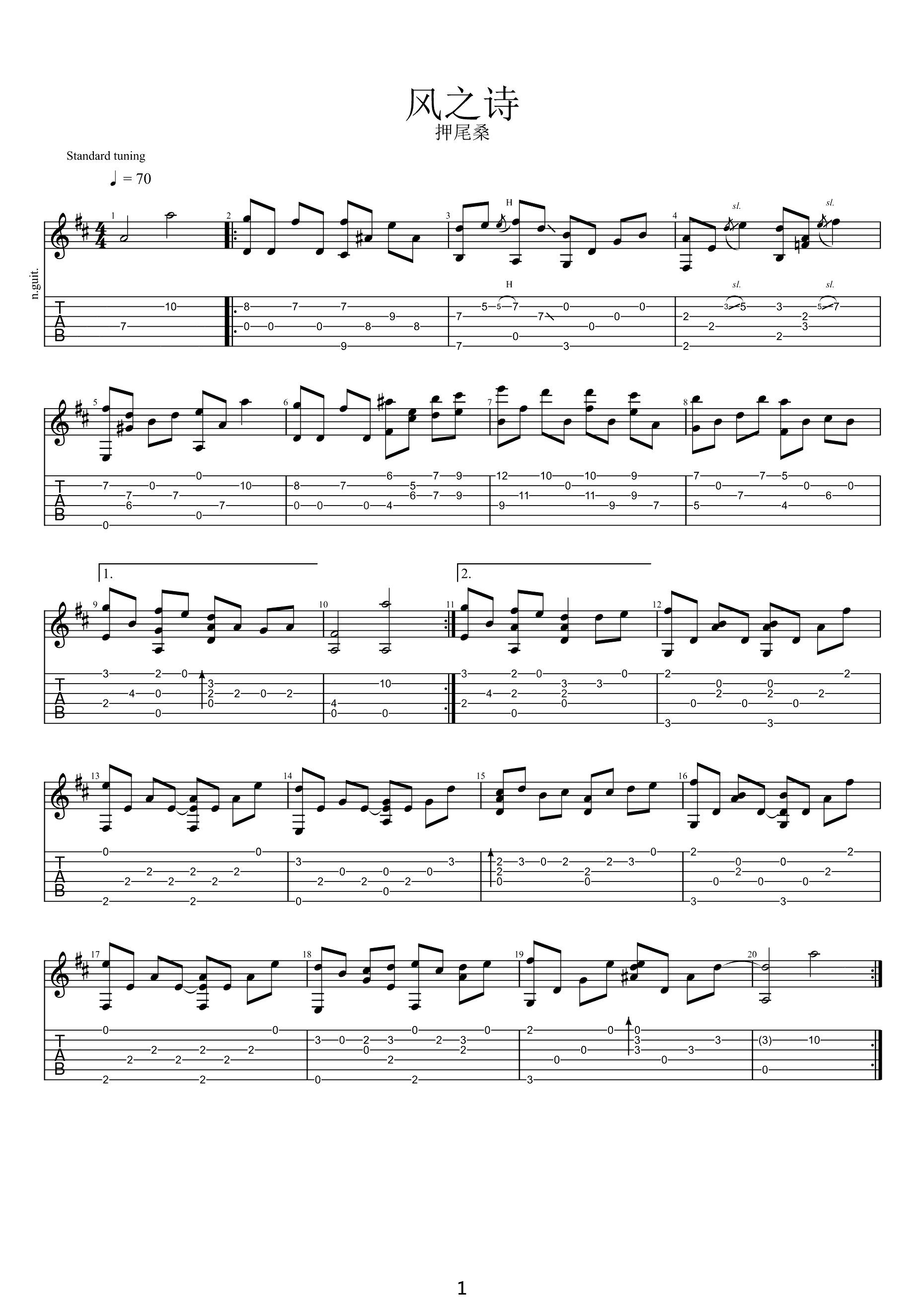 吉他谱 | 经典指弹《风之诗》