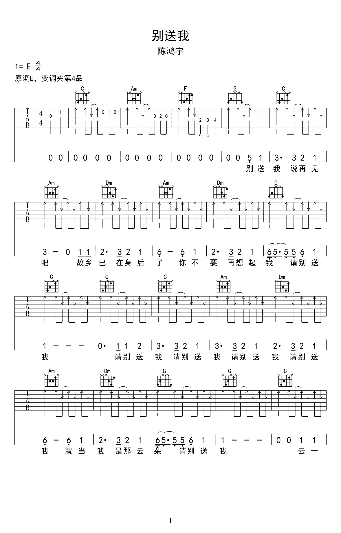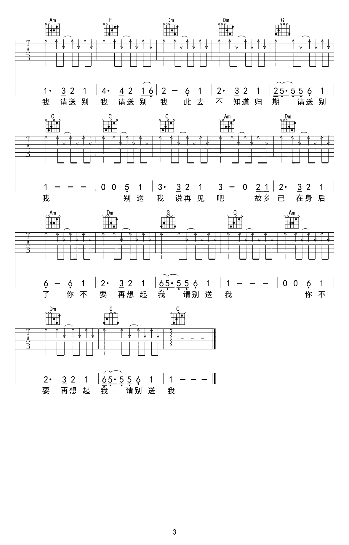 吉他谱 | 热门弹唱《别送我》