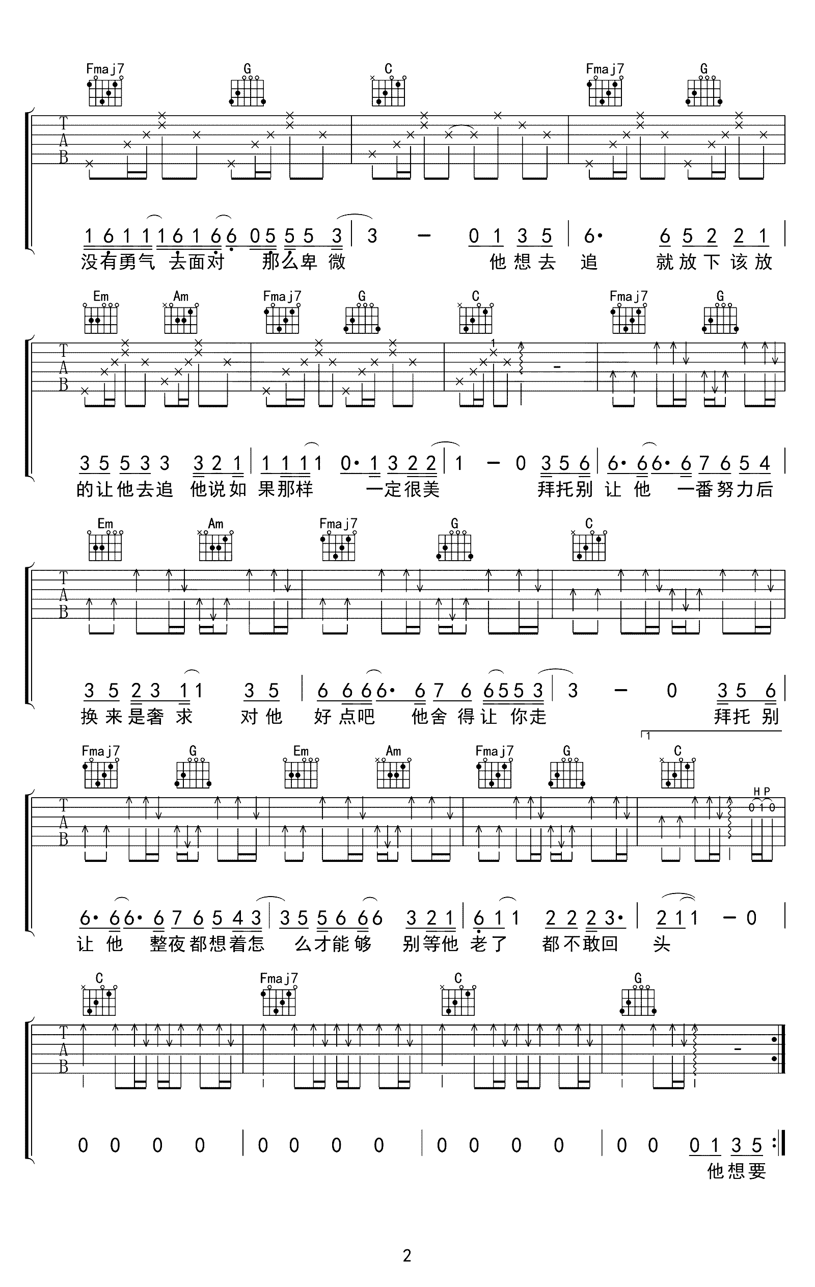 胆小鬼吉他谱_C调男生版_梁咏琪_吉他演