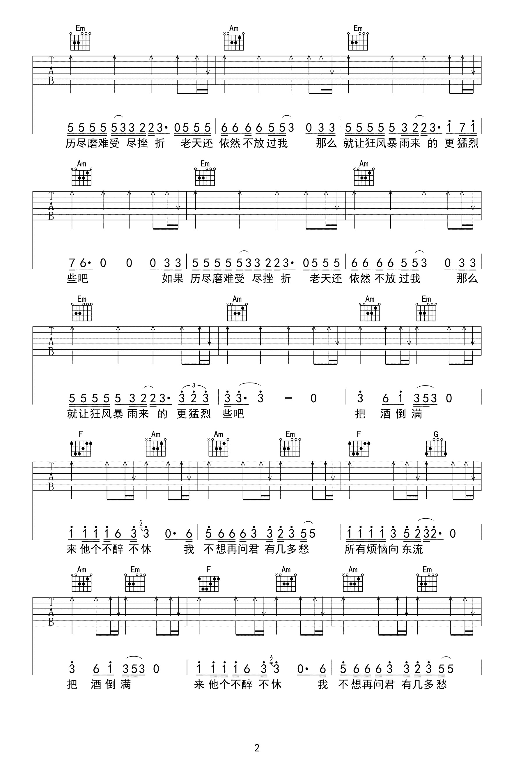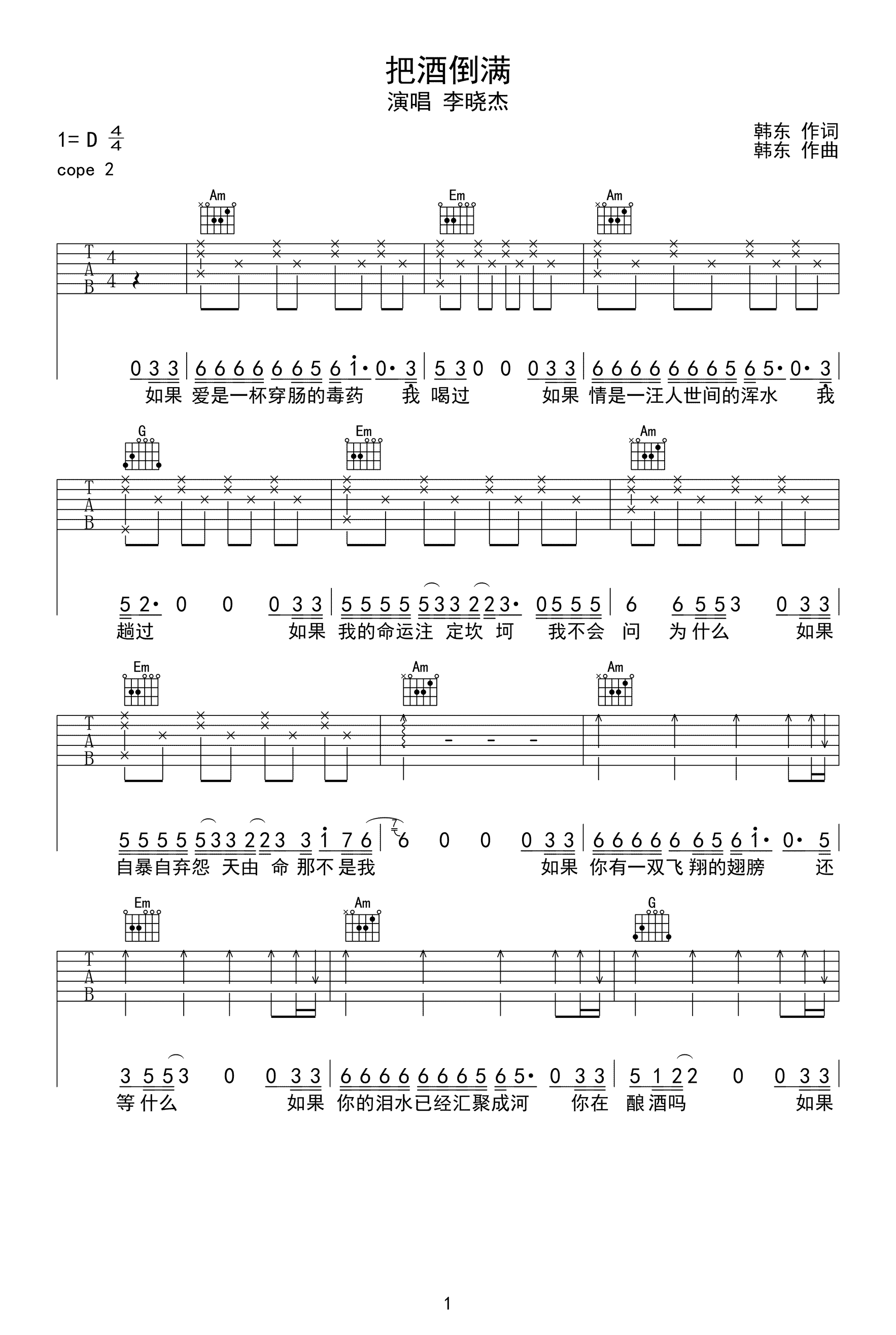 吉他谱 | 热门弹唱《把酒倒满》