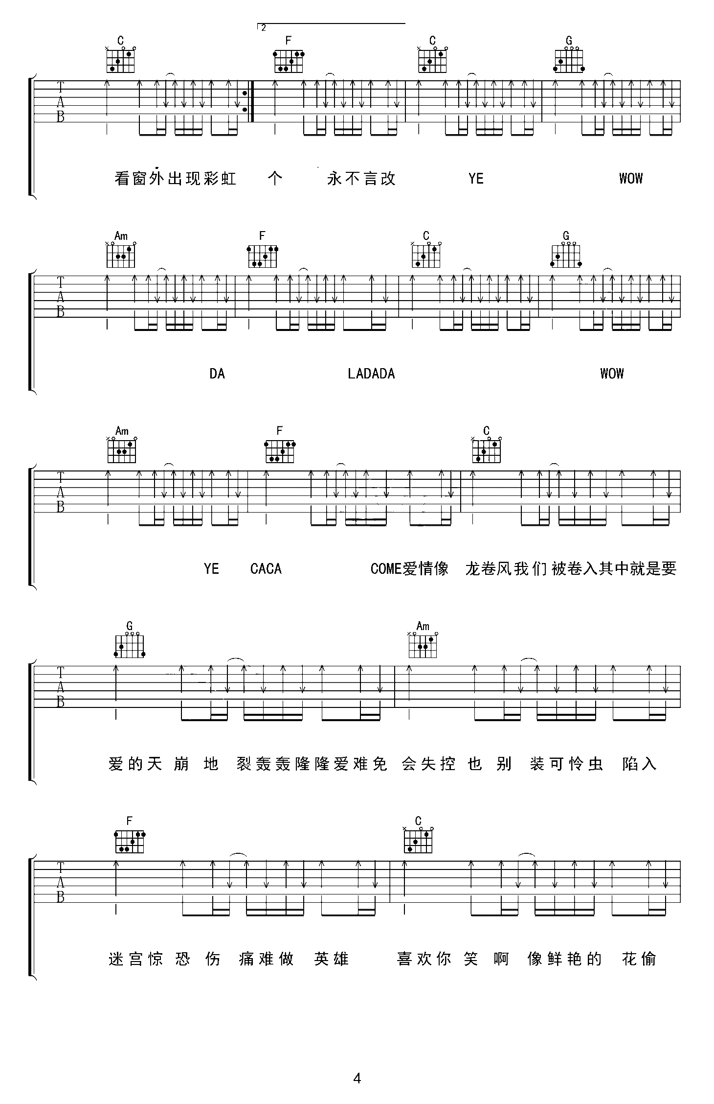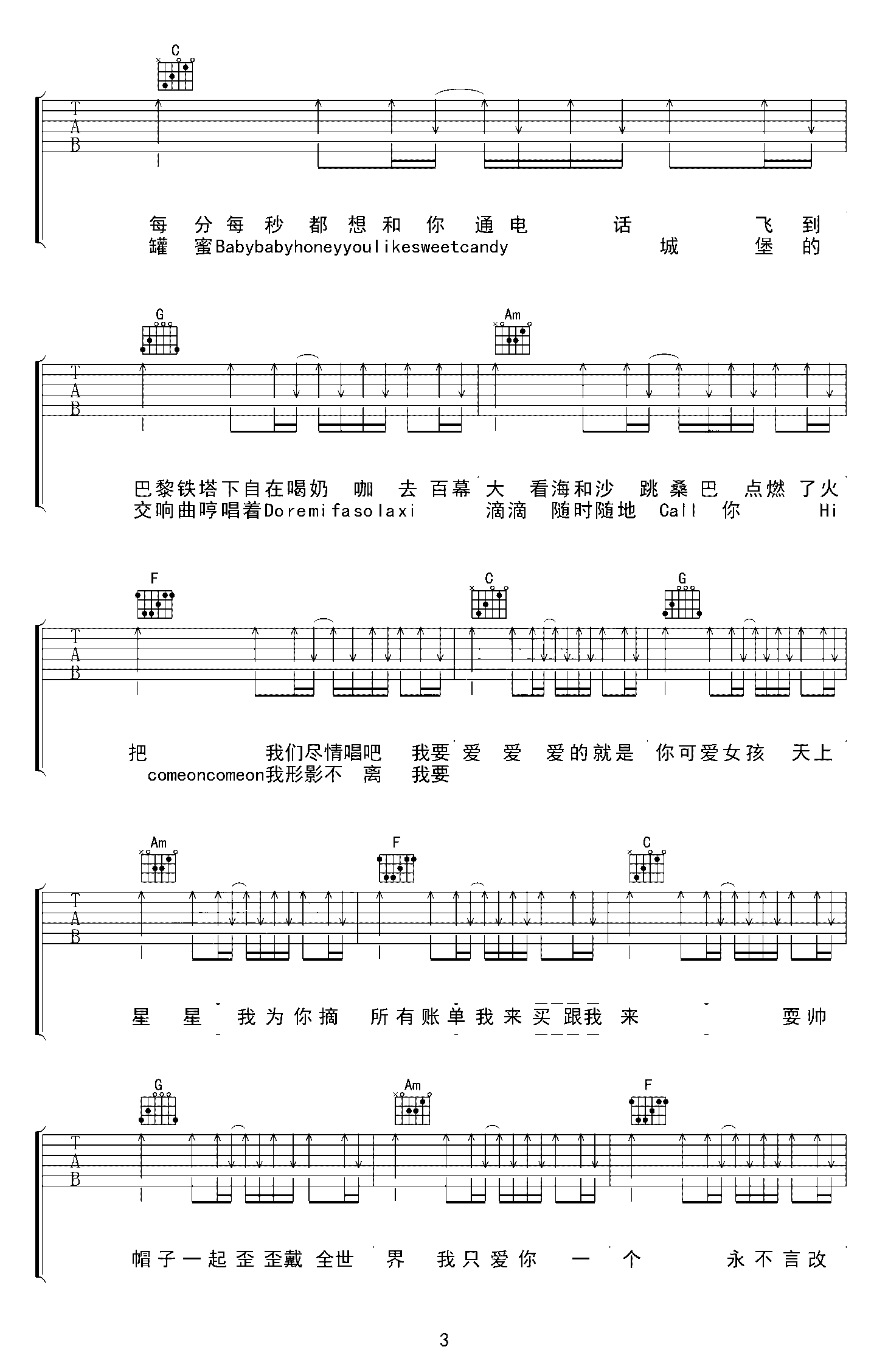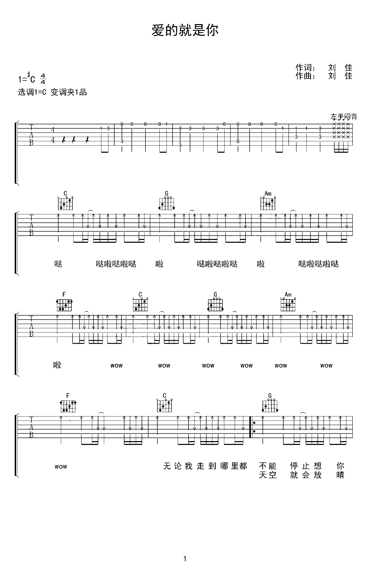 小酒窝吉他谱C调_林俊杰&蔡卓