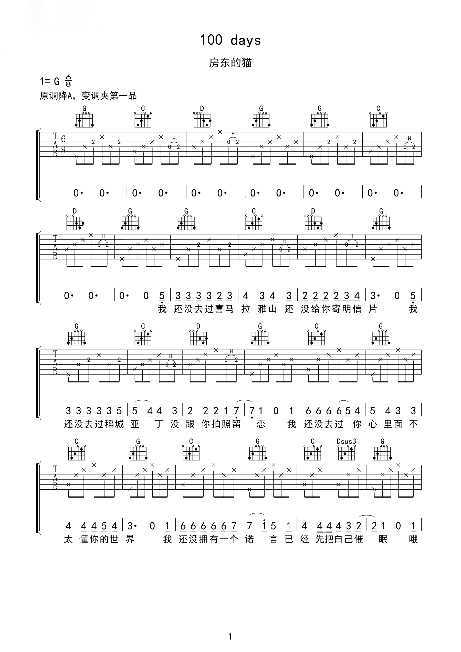 吉他谱 | 热门弹唱《100 days》