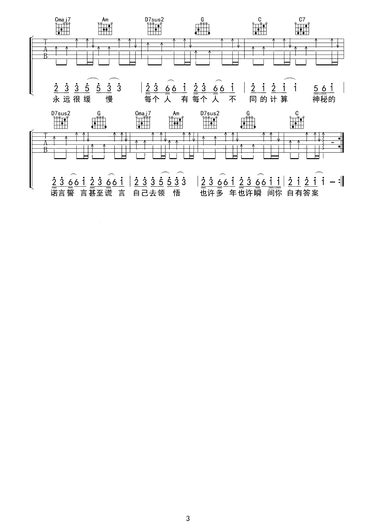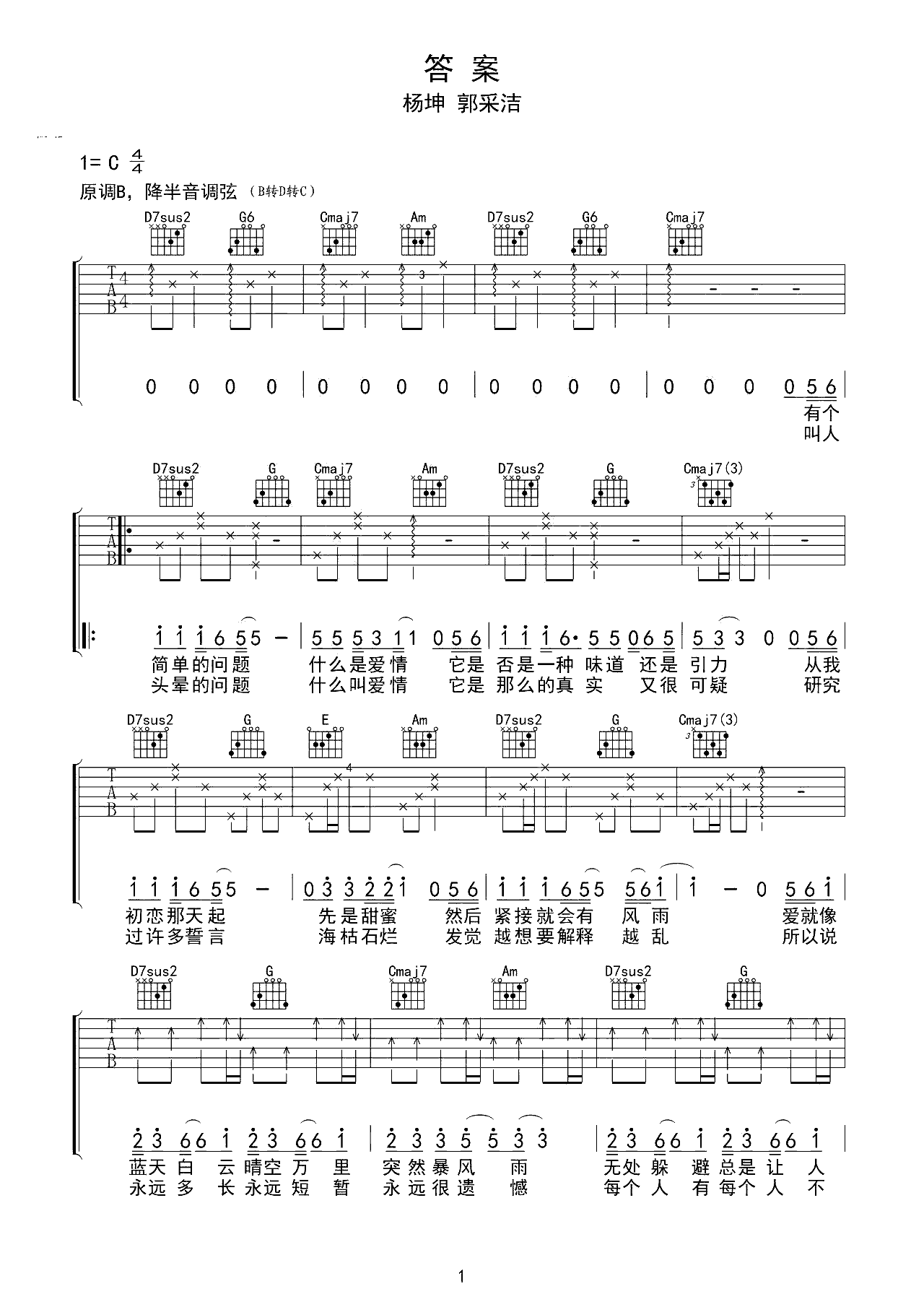 吉他谱 | 热门弹唱《答案》