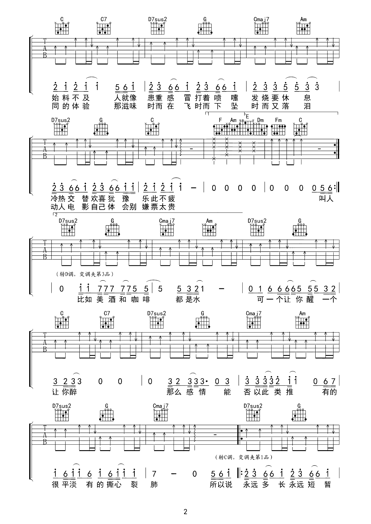 相逢是首歌 高清吉他谱