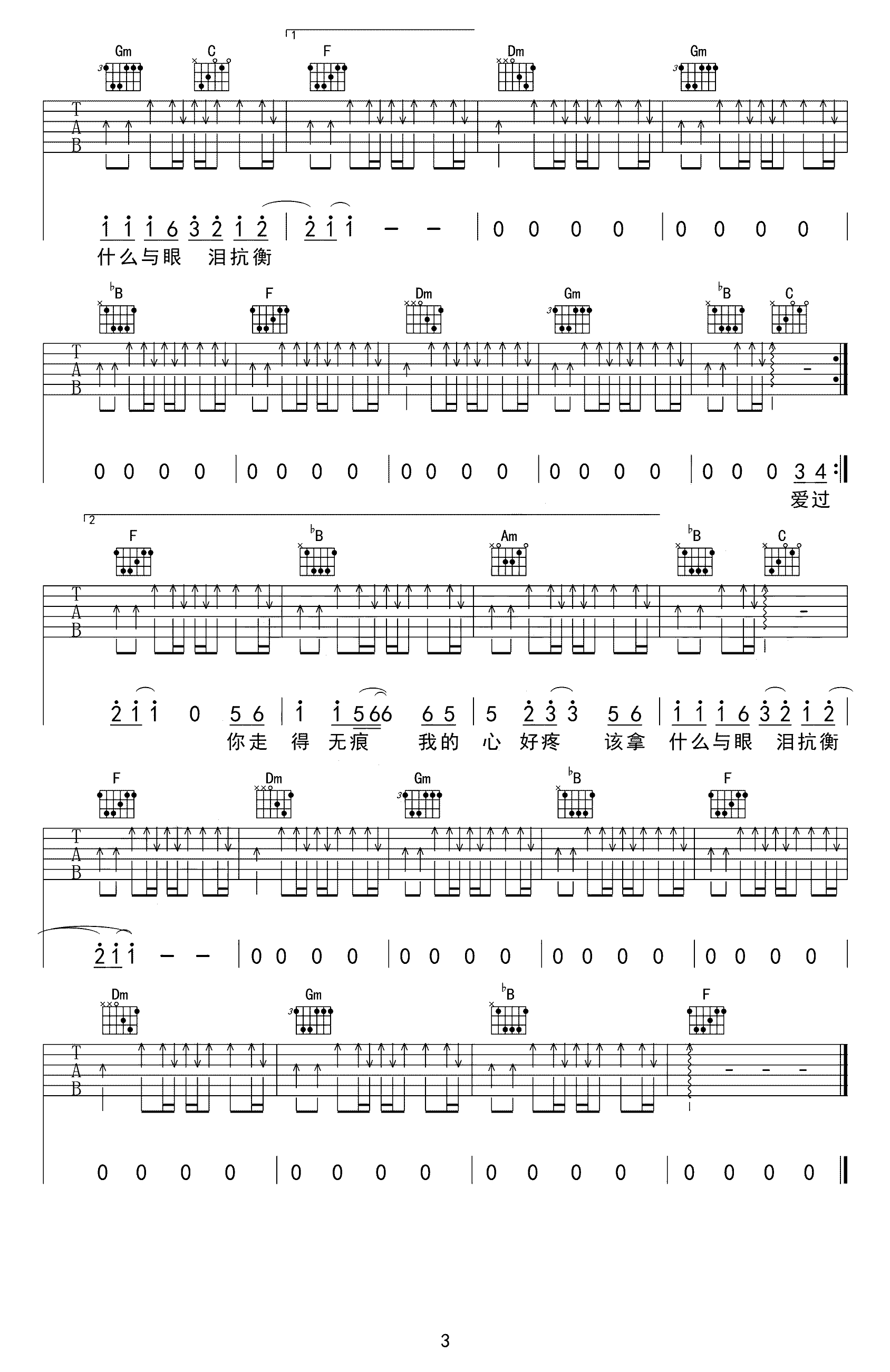 只有你陪我一起唱歌 高清版吉他谱