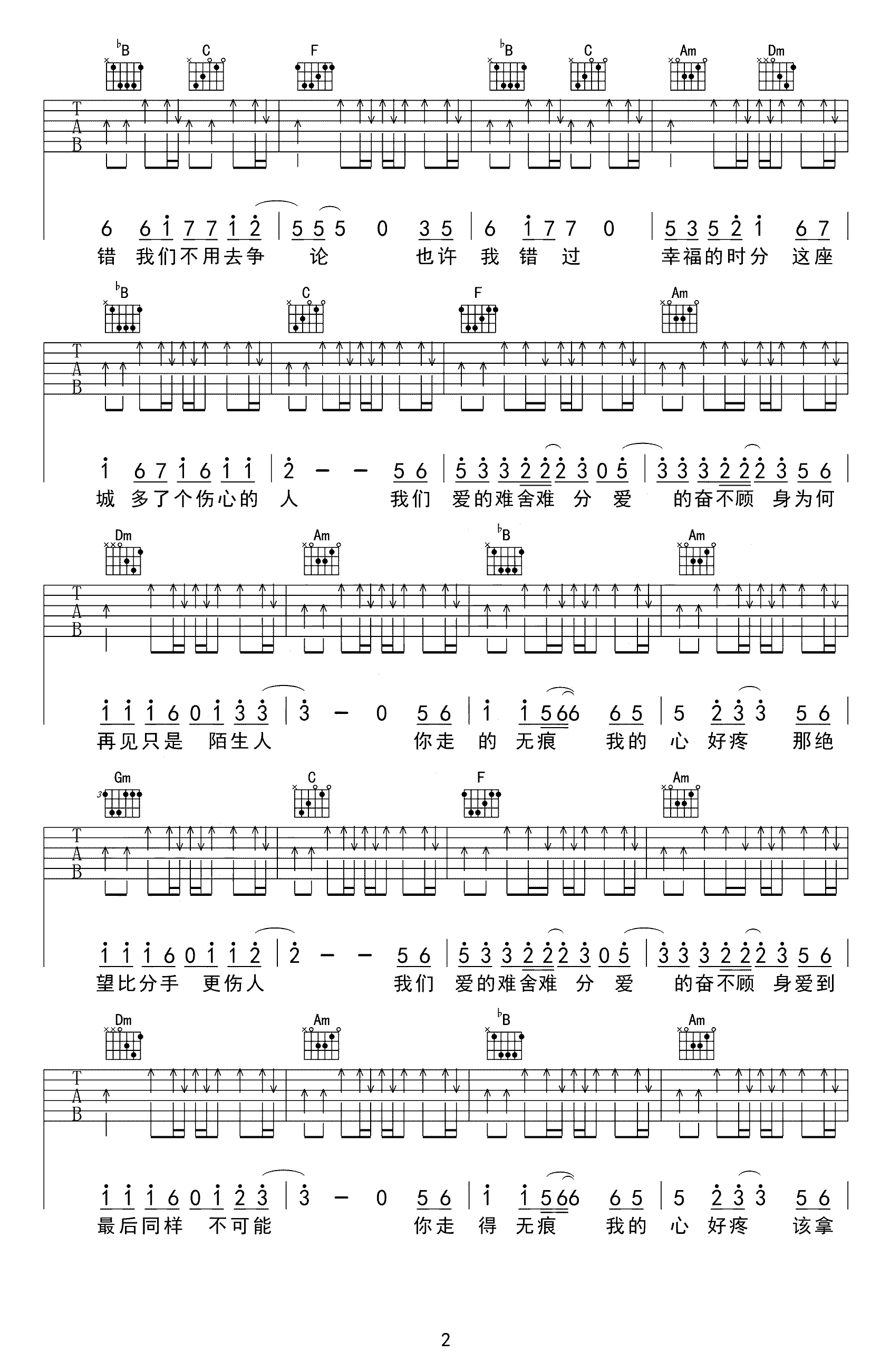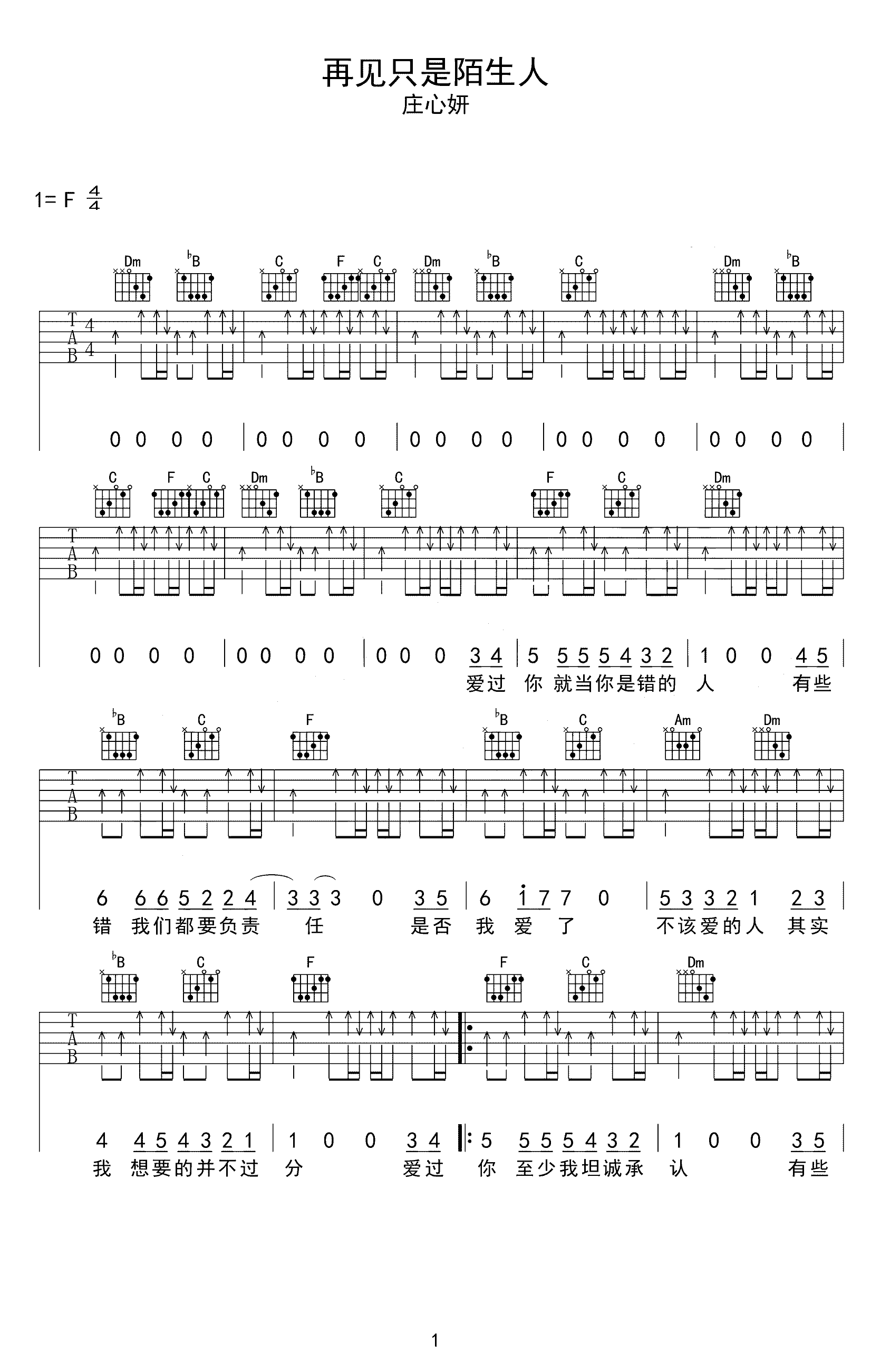 吉他谱 | 热门弹唱《再见只是陌生人》