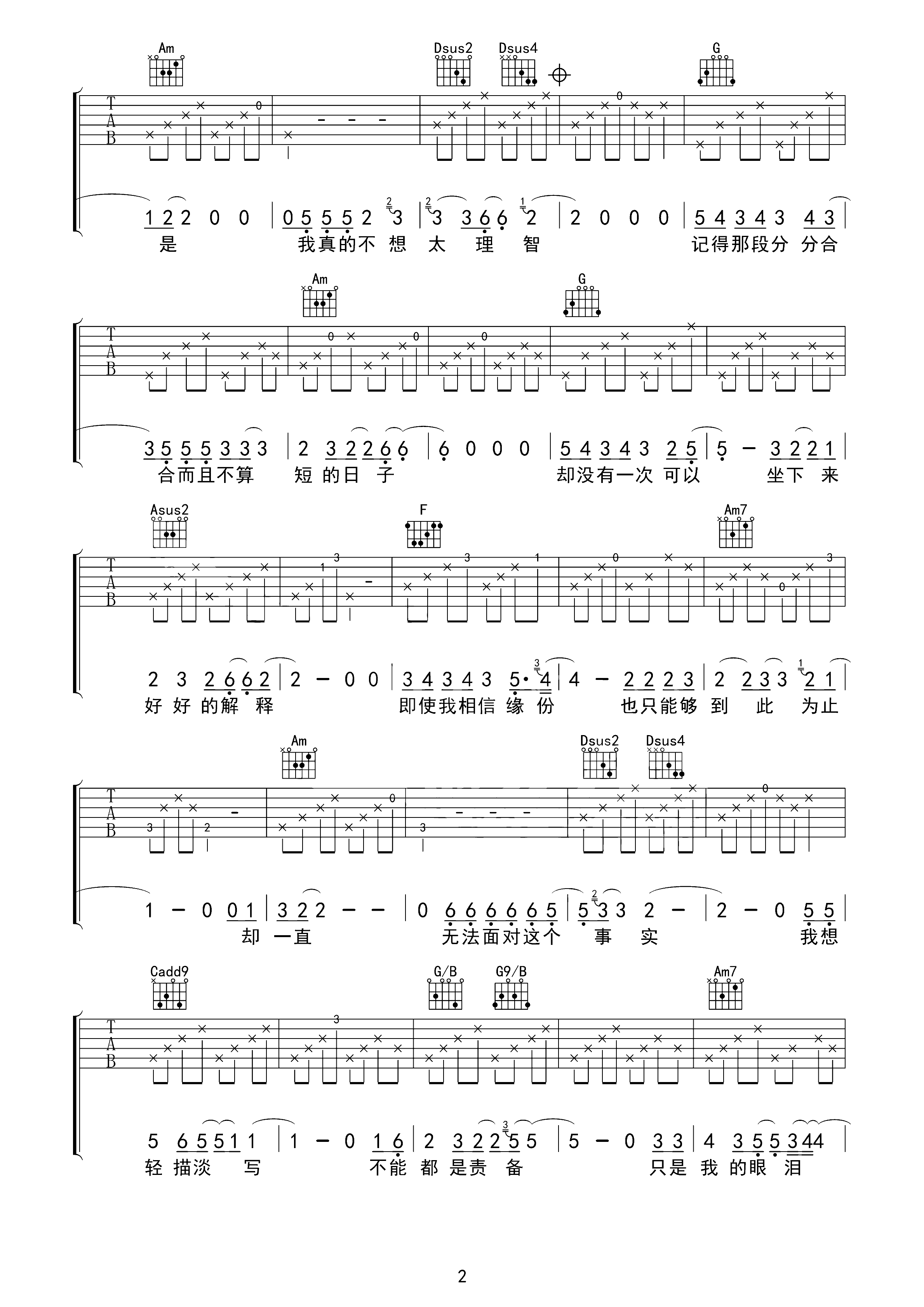 我爱你胜过你爱我 高清版吉他谱