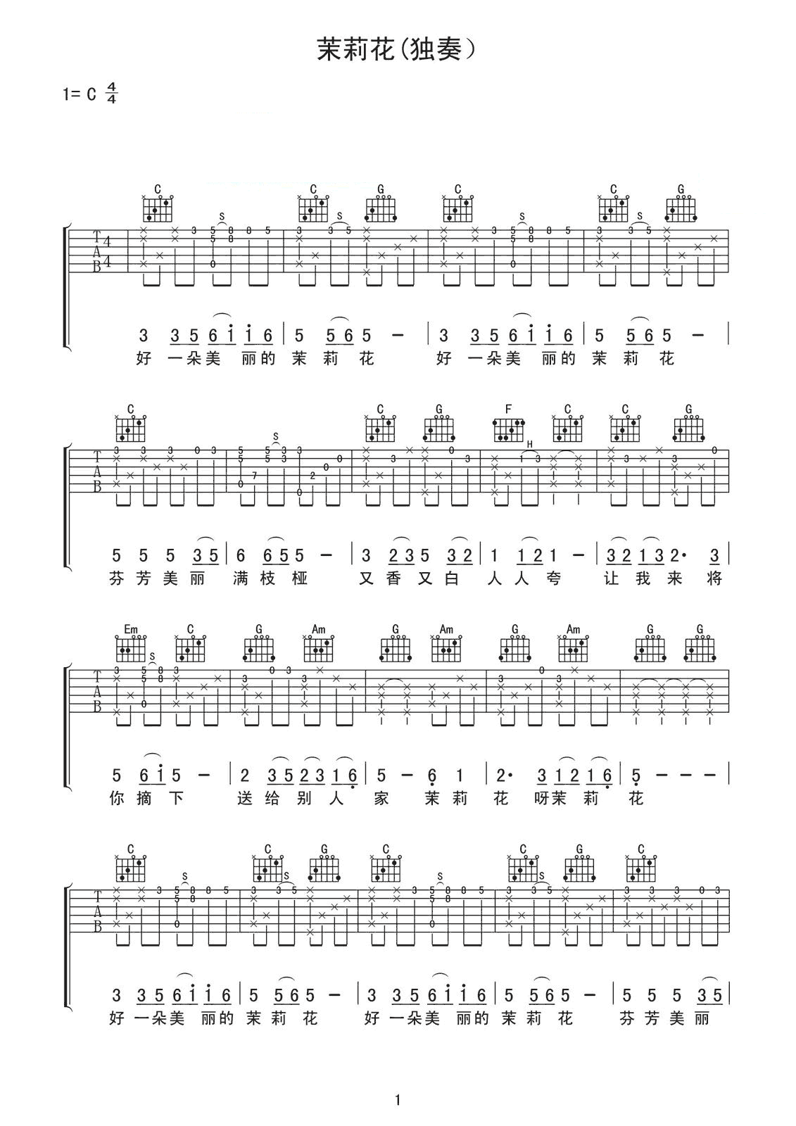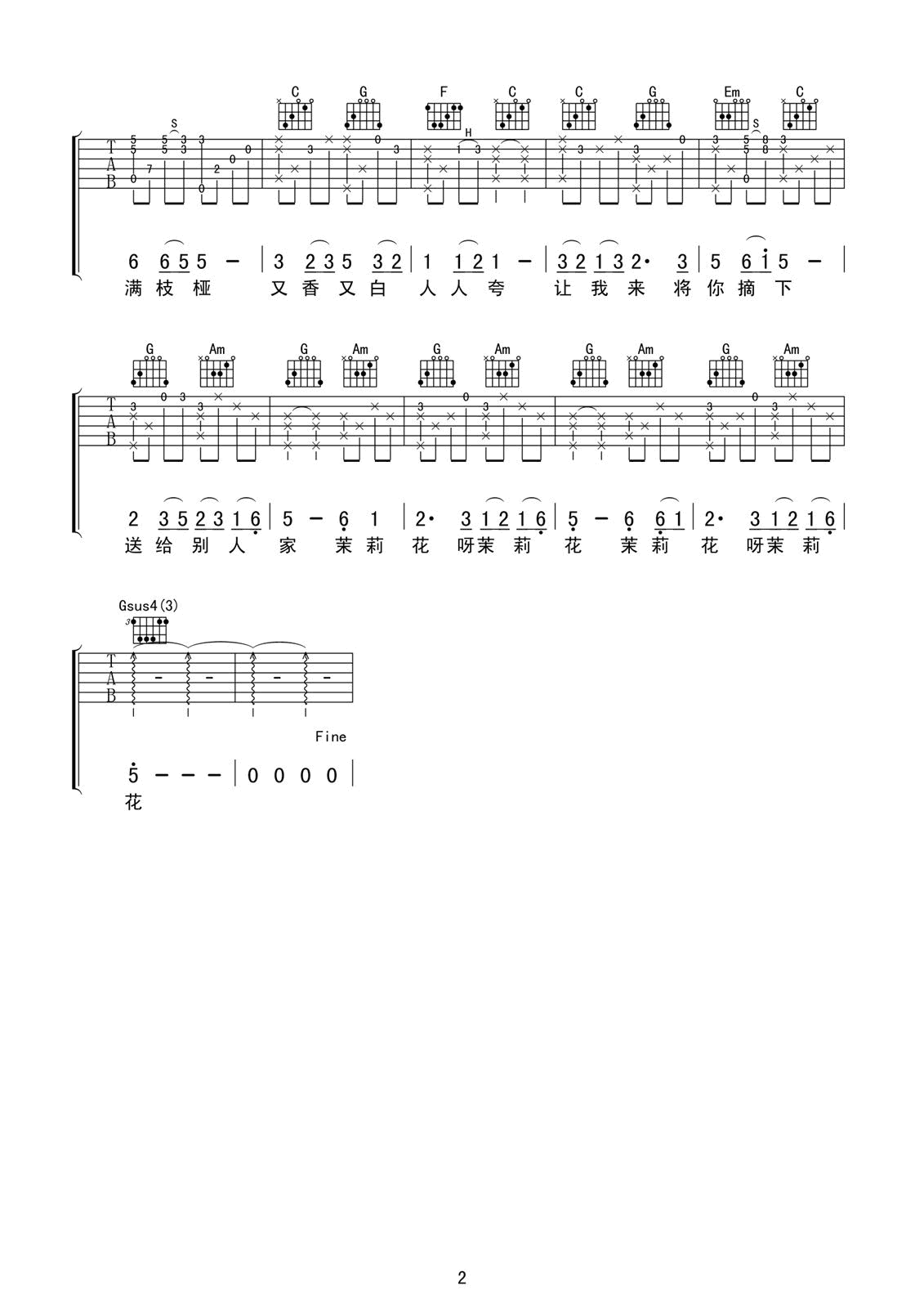 吉他谱 | 经典指弹《茉莉花》