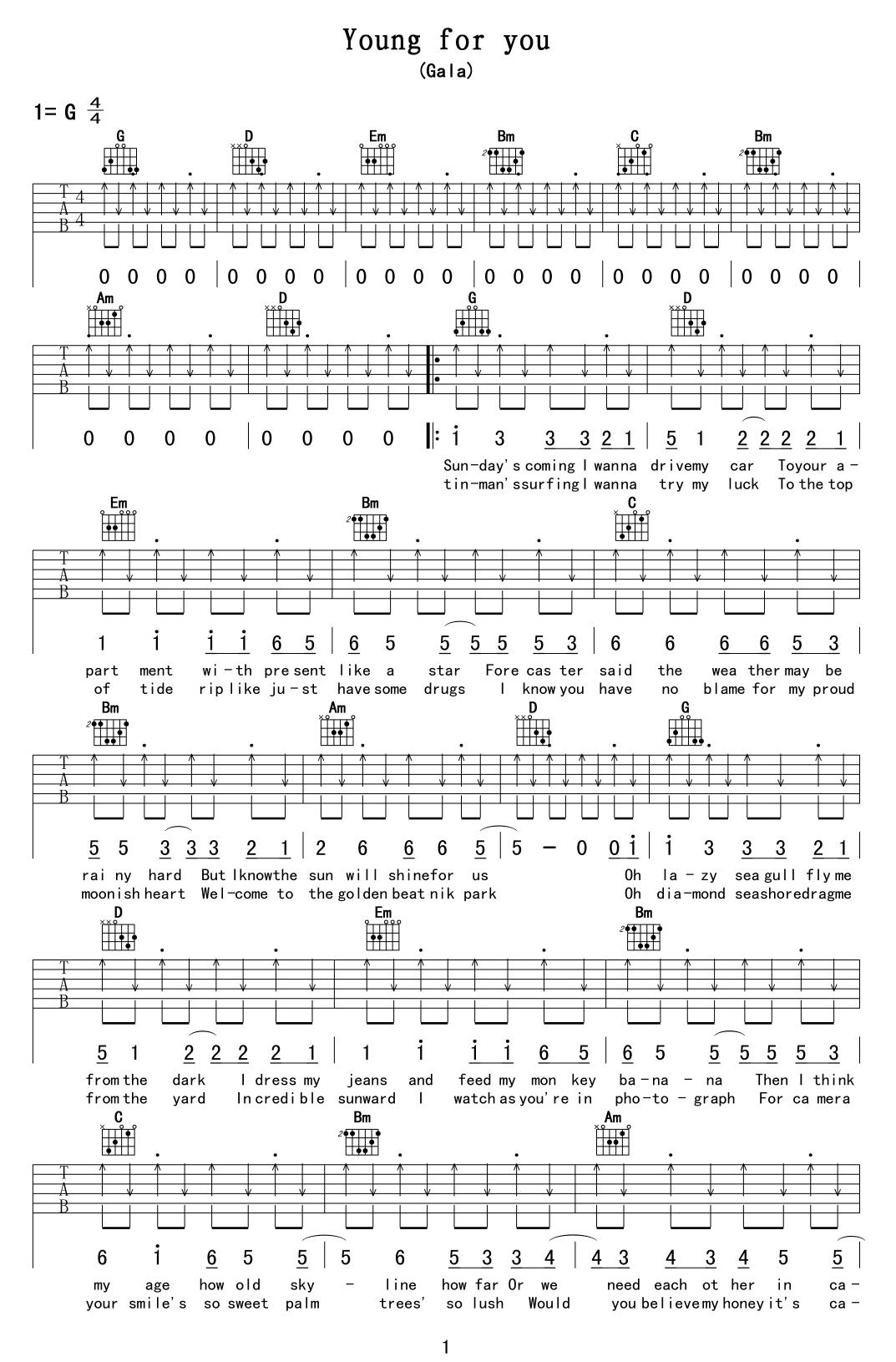 男孩吉他谱_