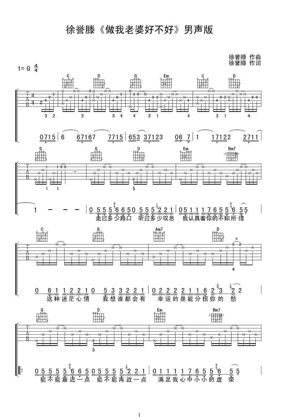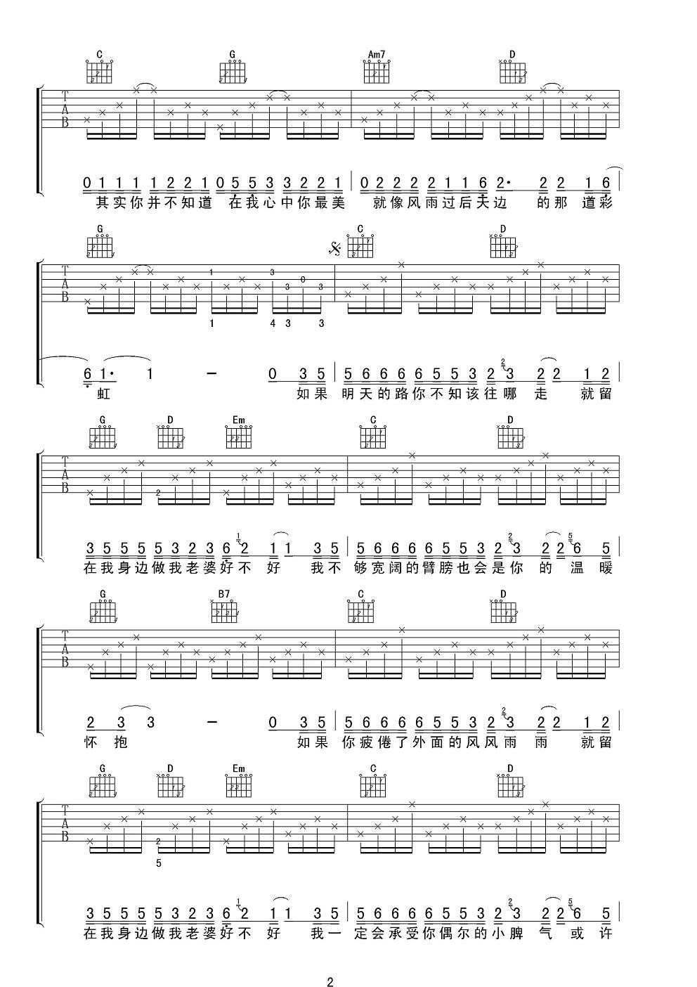 吉他谱 | 热门弹唱《做我老婆好不好》