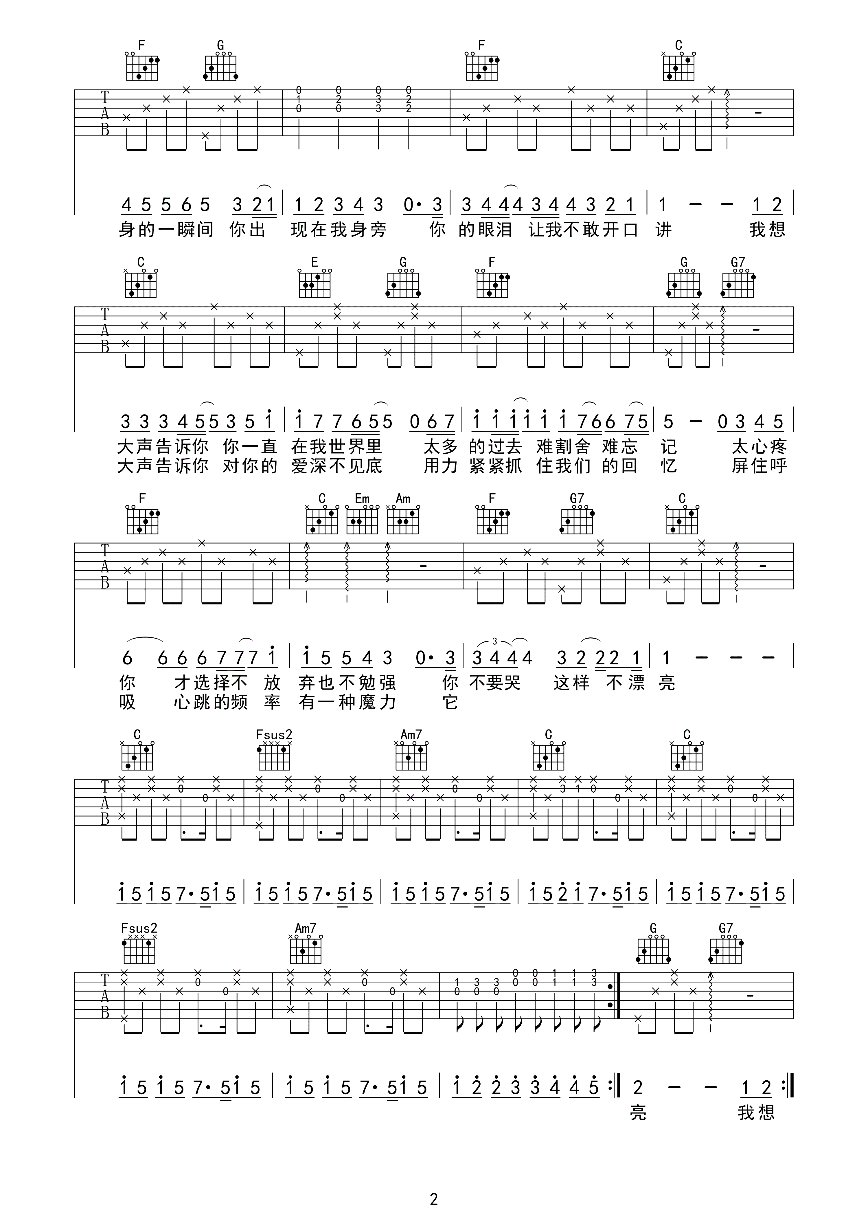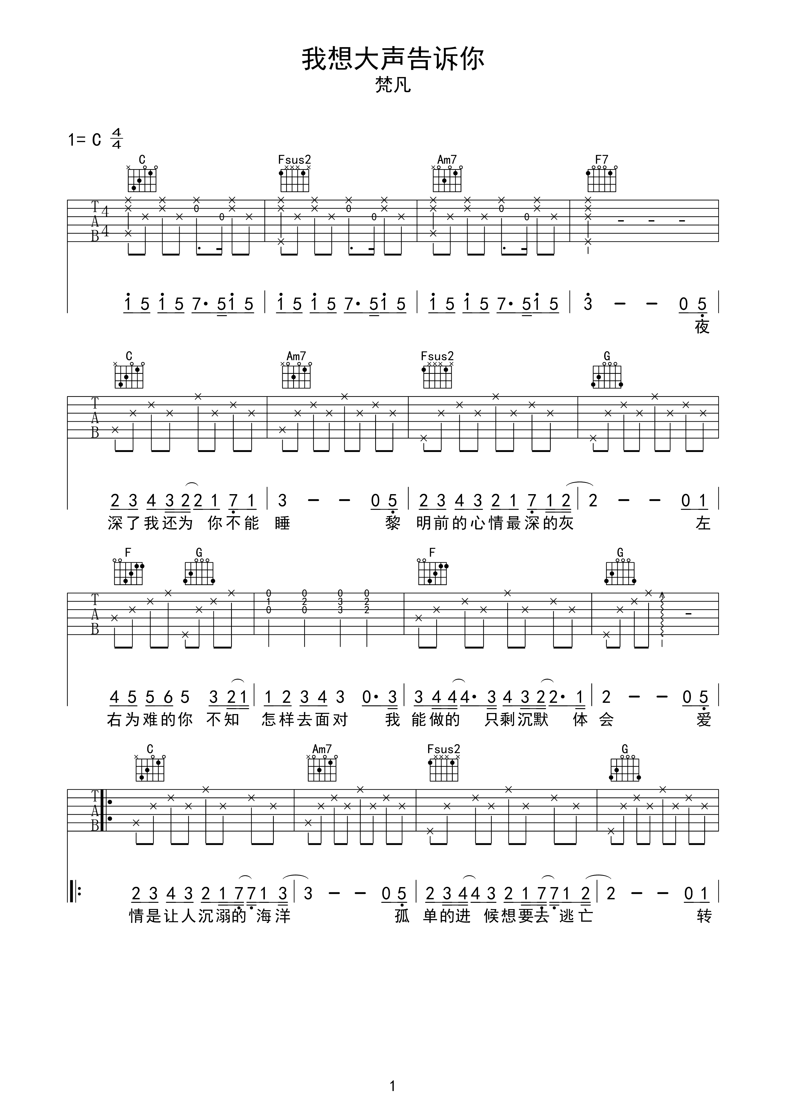 吉他谱 | 热门弹唱《我想大声告诉你》