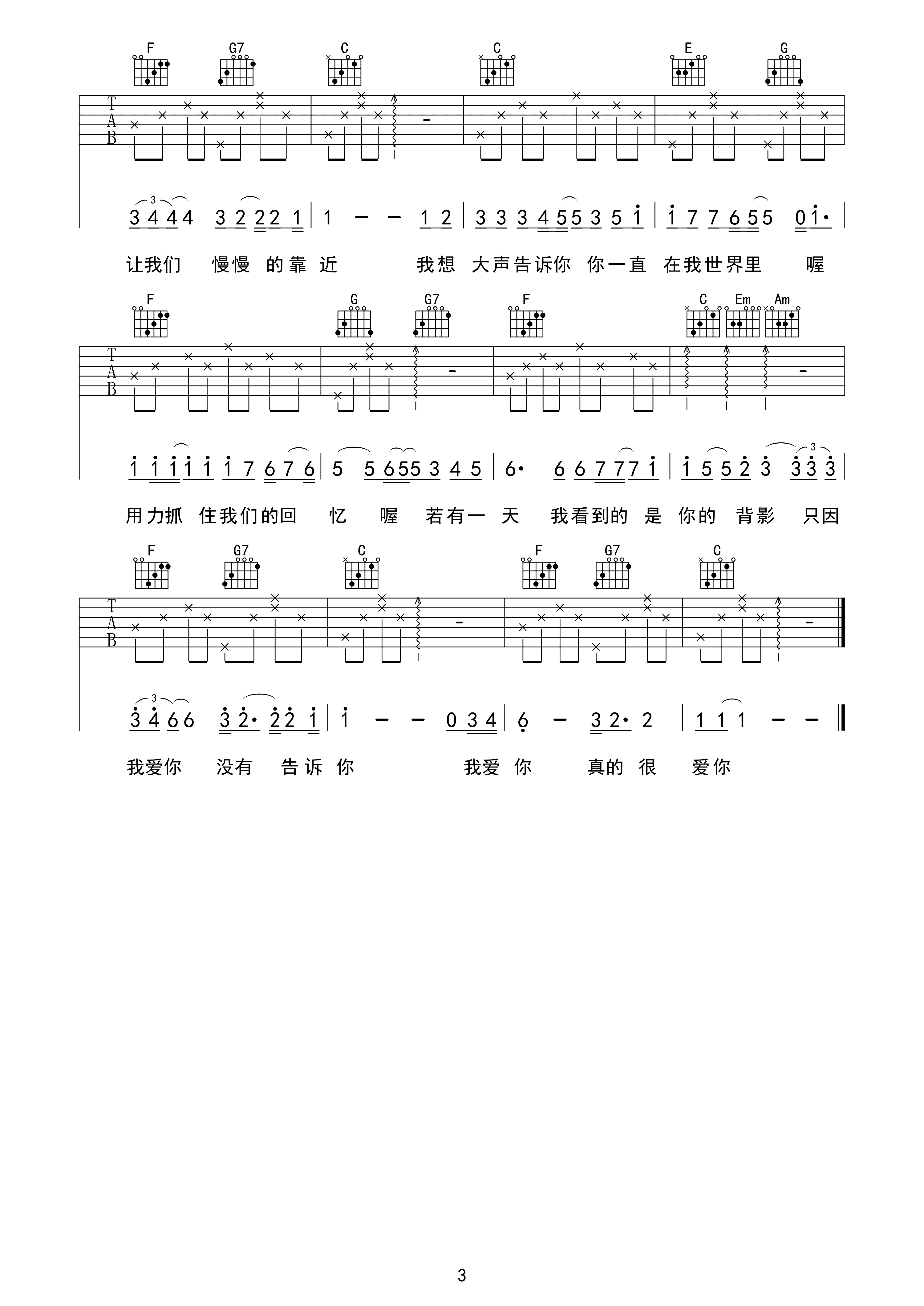 爱很简单吉他谱_陶_C调弹唱谱_图片谱