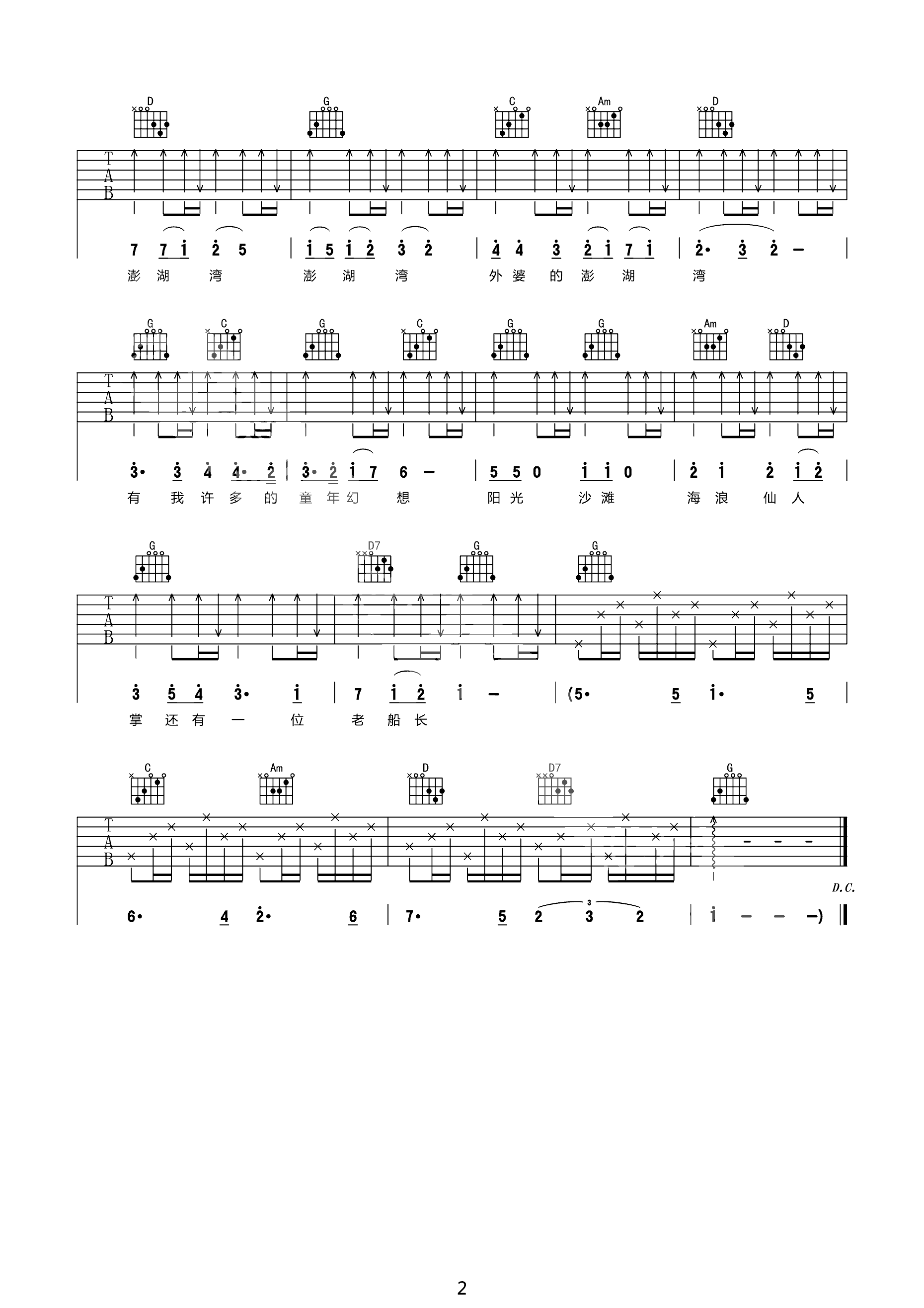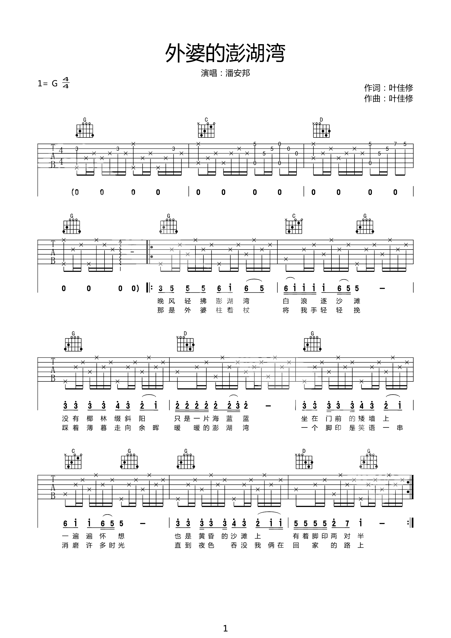 吉他谱 | 热门弹唱《外婆的澎湖湾》