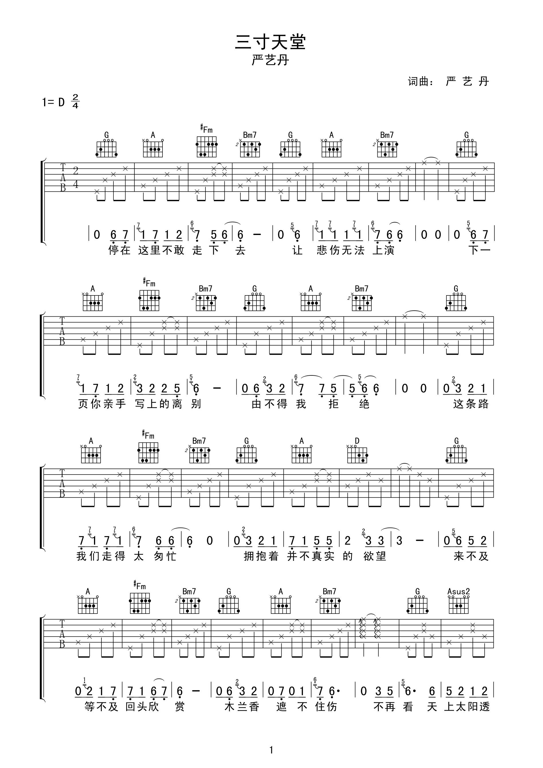 吉他谱 | 热门弹唱《三寸天堂》