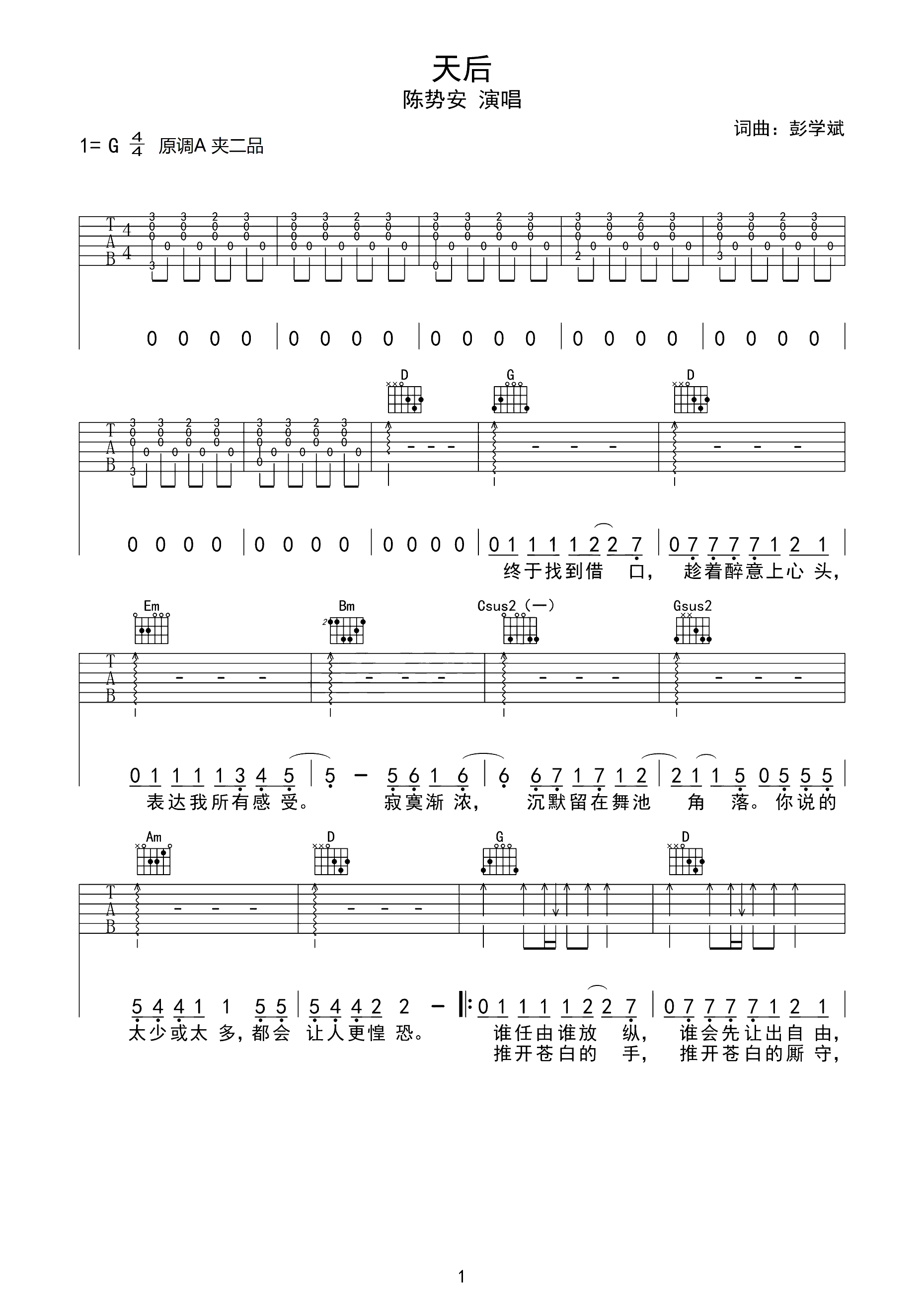 吉他谱 | 热门弹唱《天后》