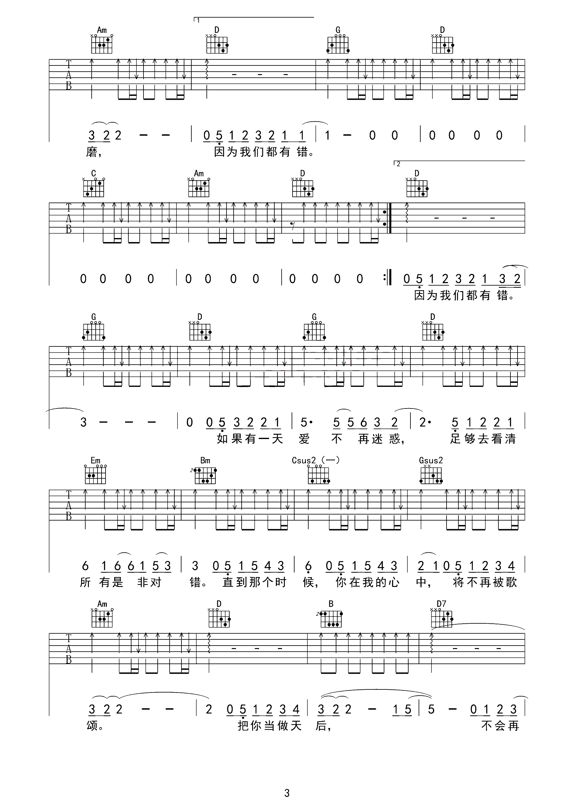 我一直都在吉他谱