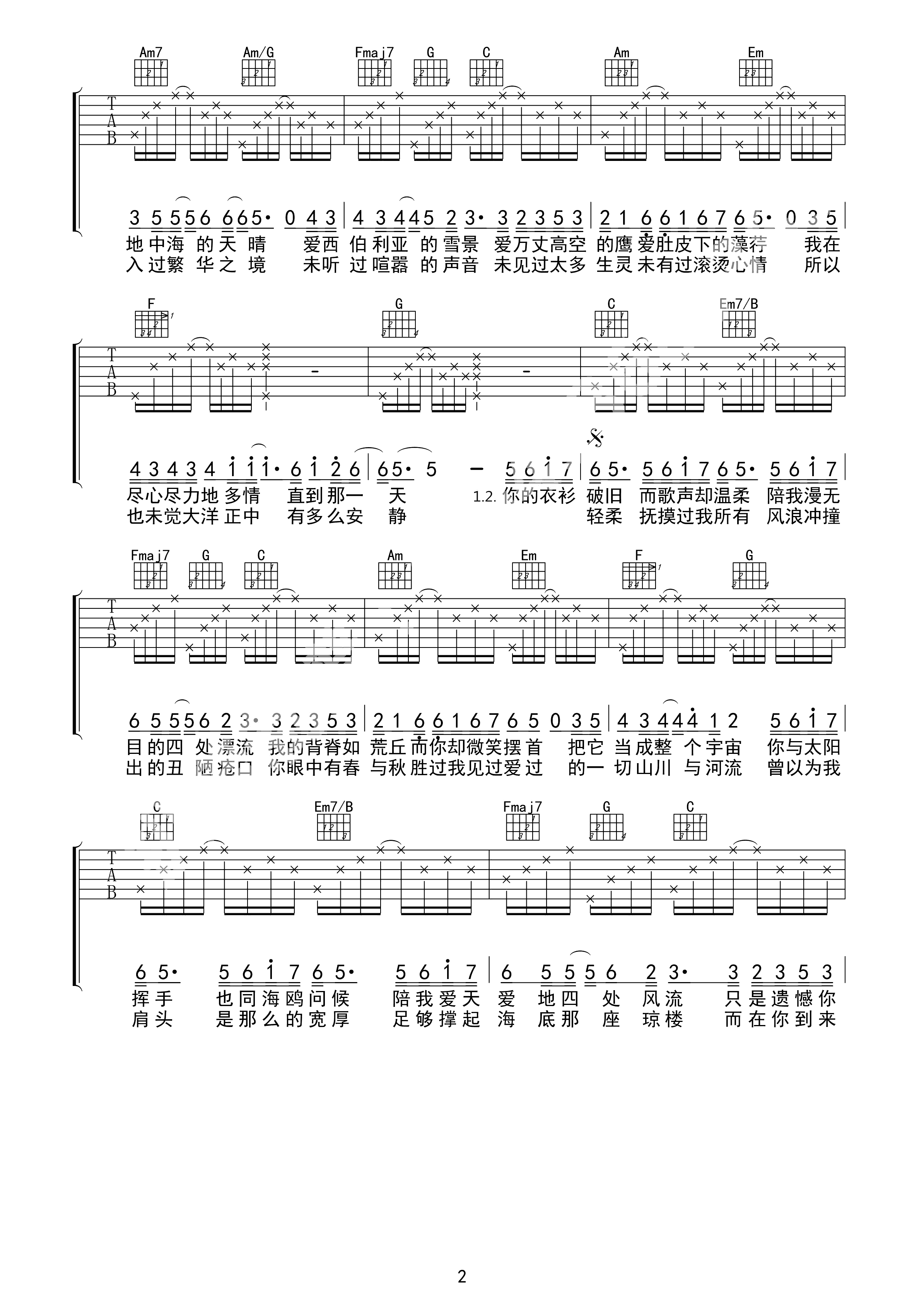 吉他谱 | 热门弹唱《化身孤岛的鲸》
