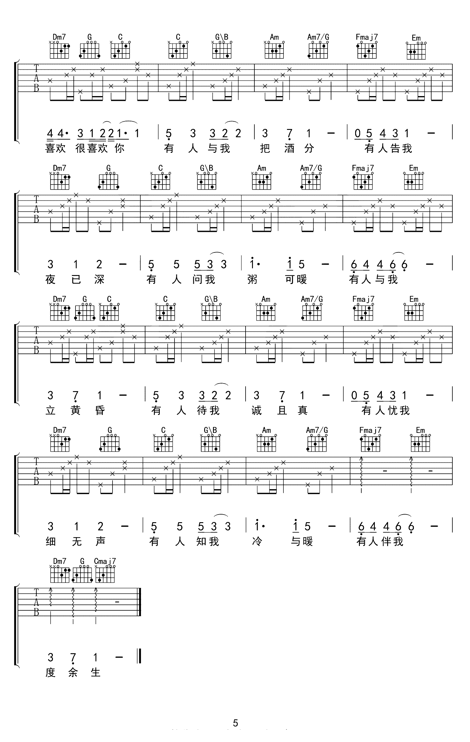 沙漠骆驼吉他谱 C调标准版 高清弹唱谱