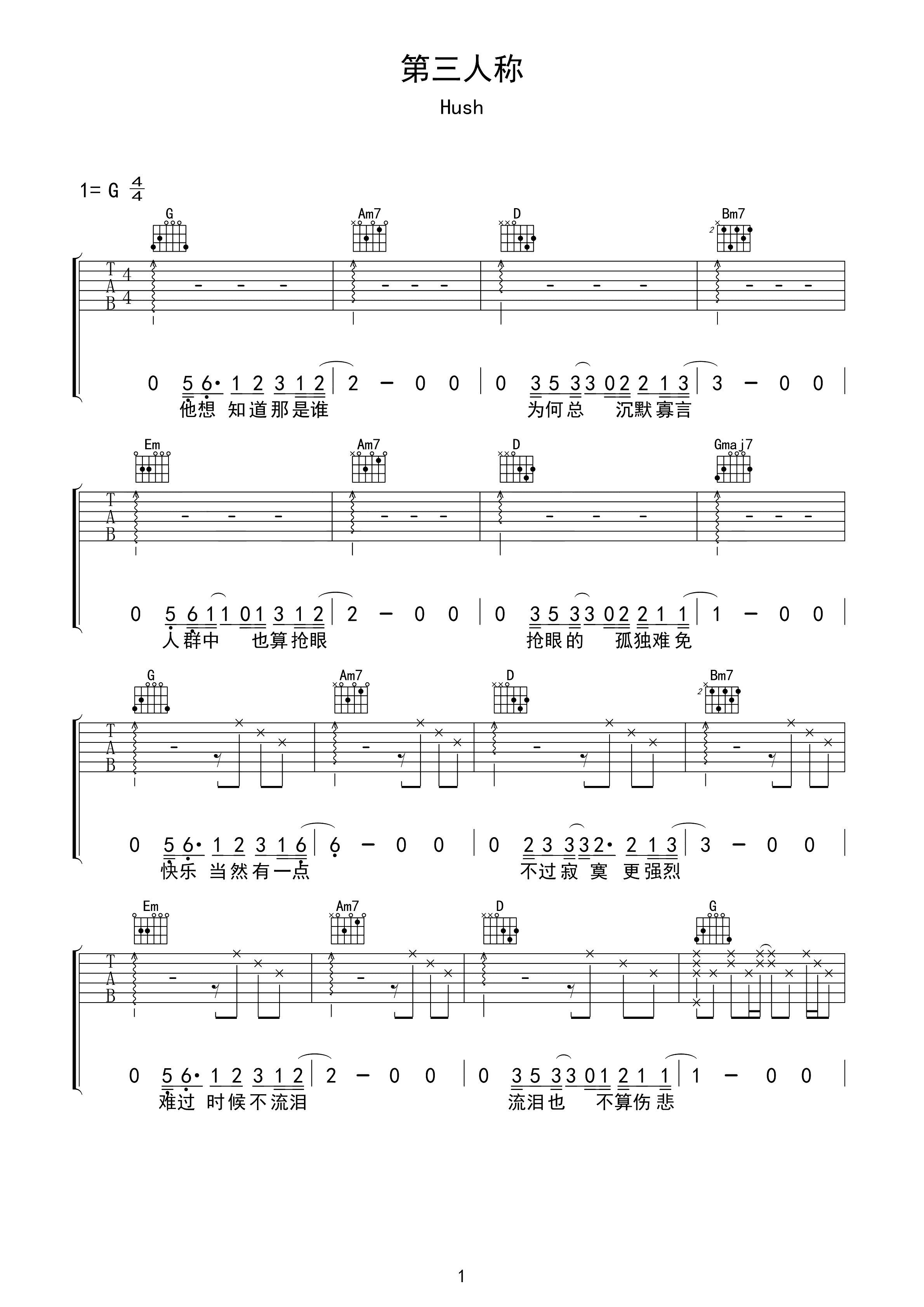 吉他谱 | 热门弹唱《第三人称》