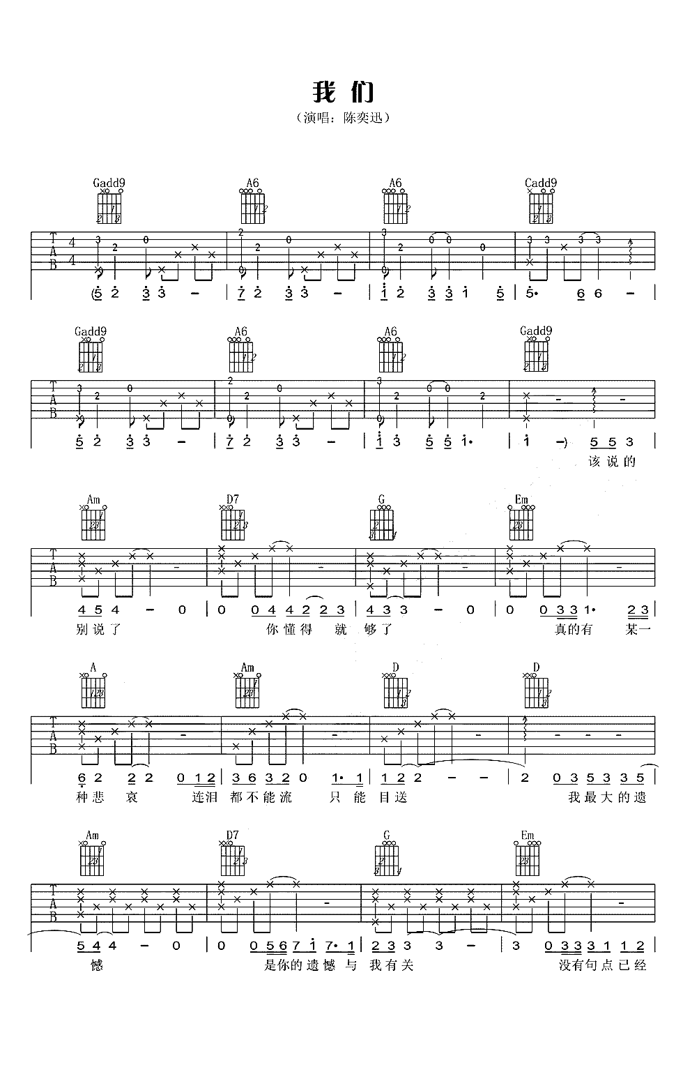 易烊千玺《你说》吉他谱 六线谱弹唱谱