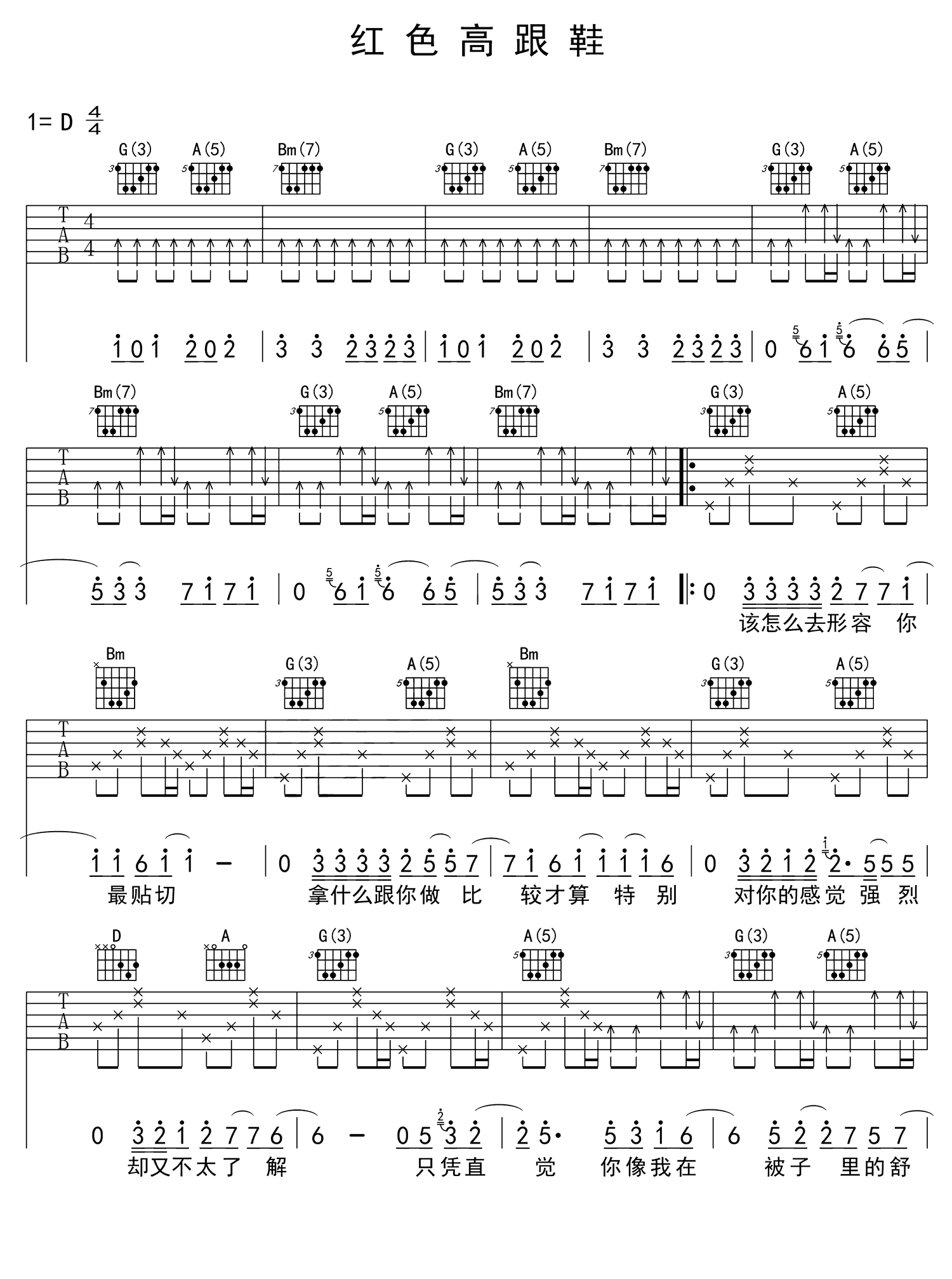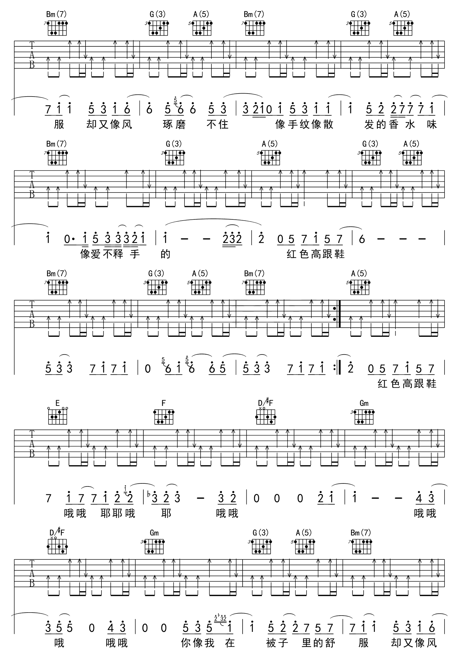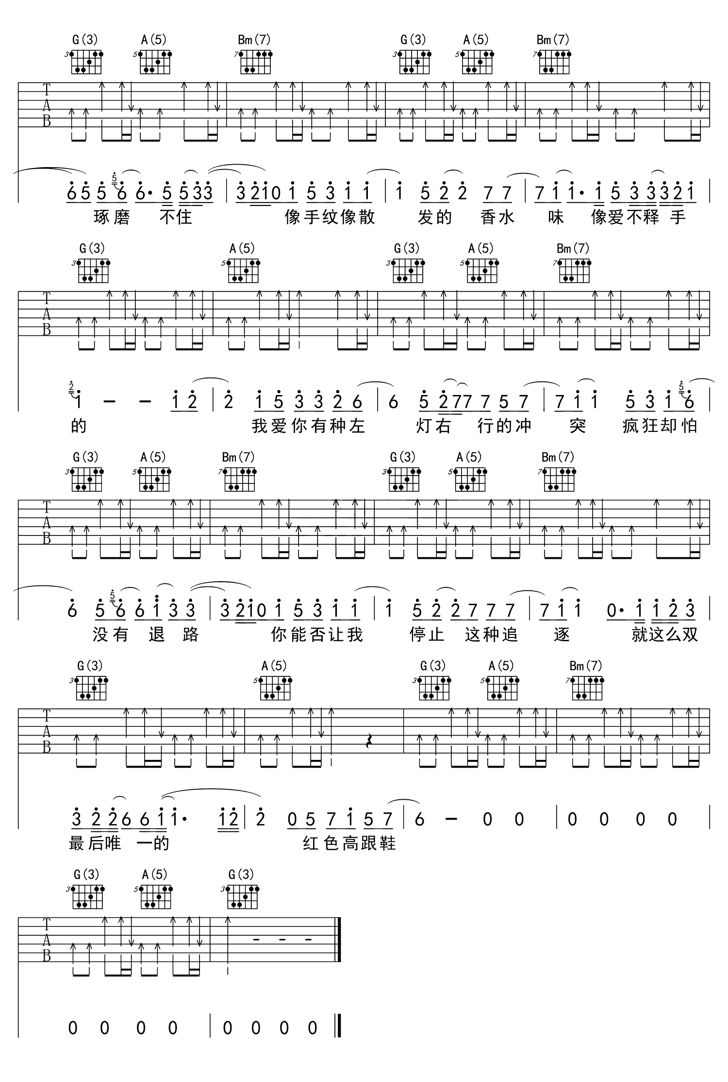 吉他谱 | 热门弹唱《红色高跟鞋》