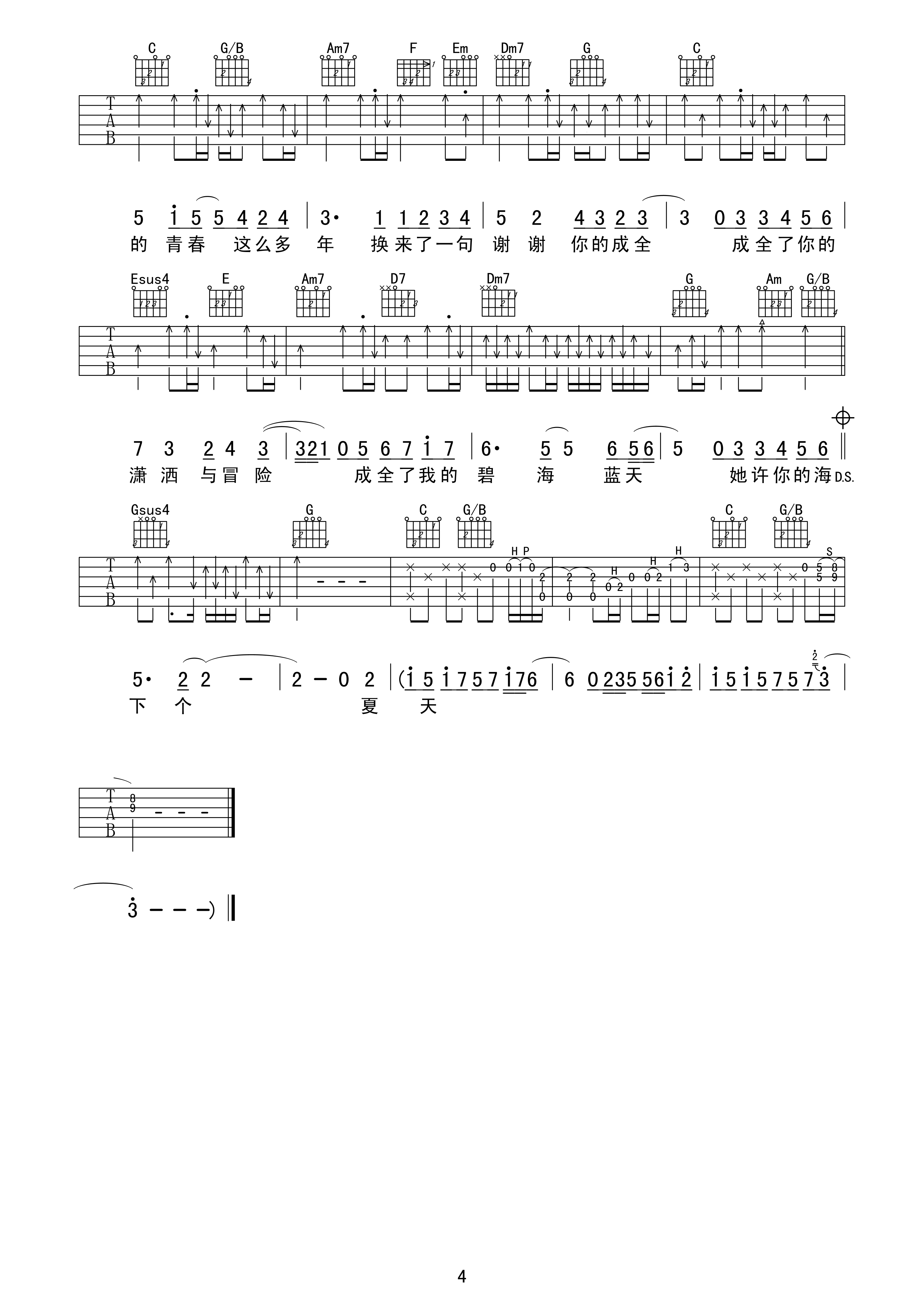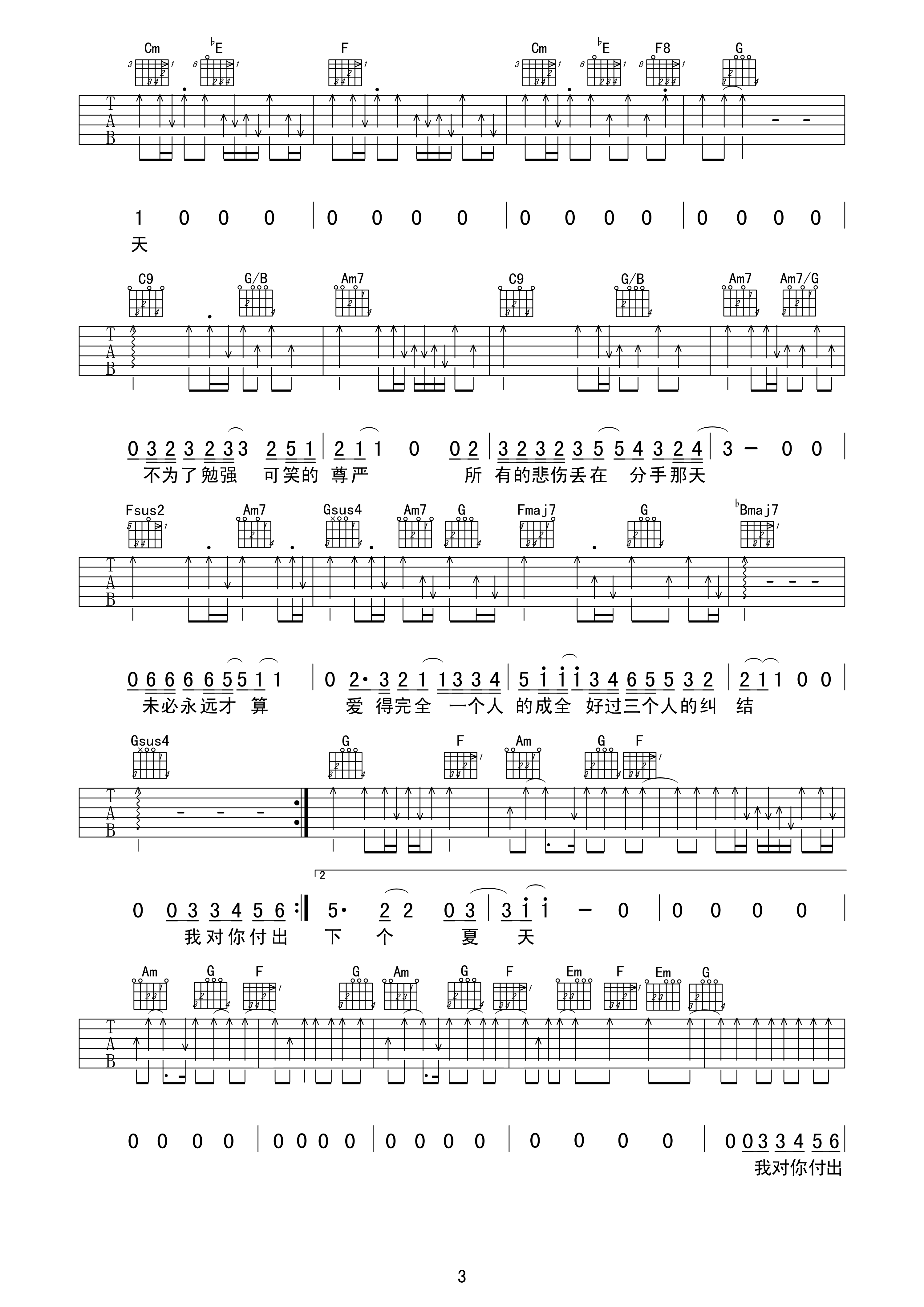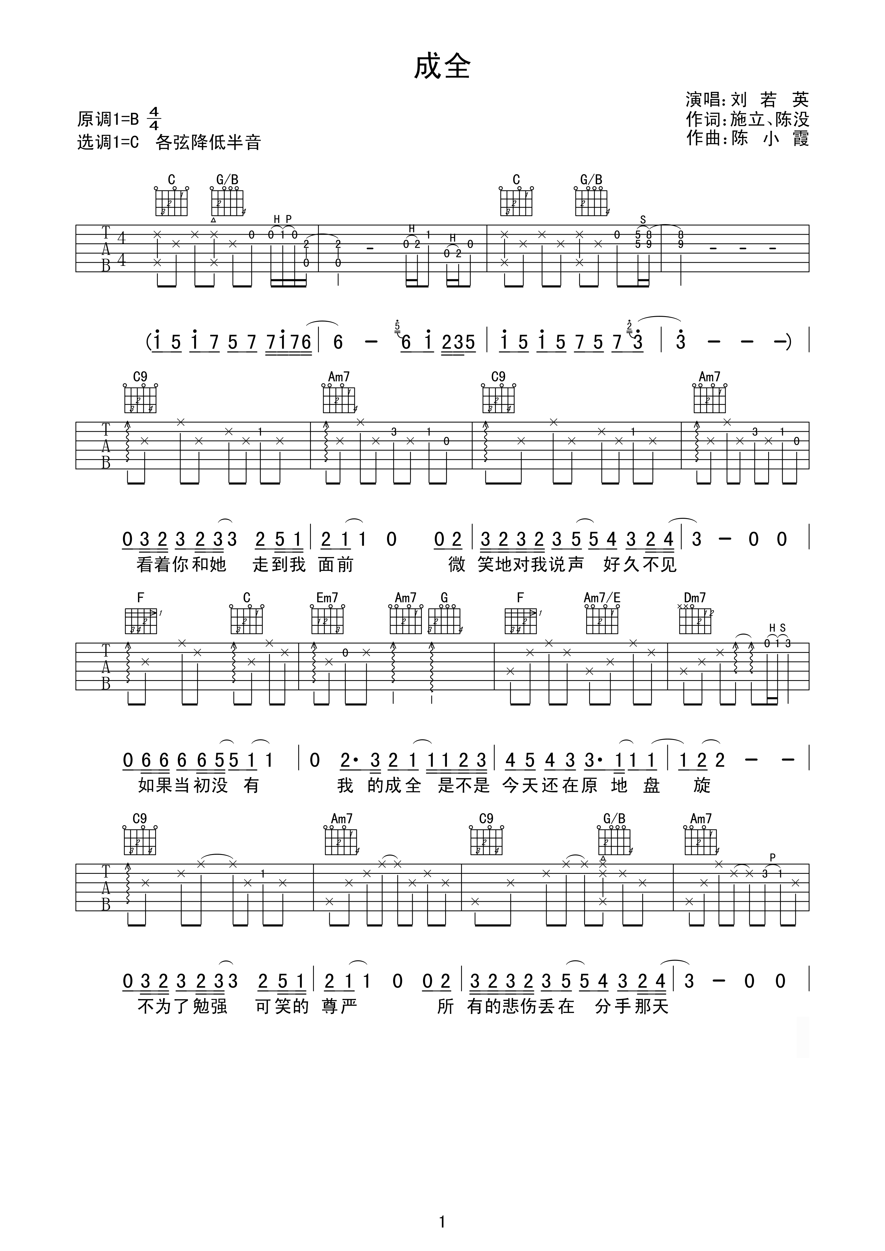 遥远的你吉他谱 C调 弹唱演示+教学视频