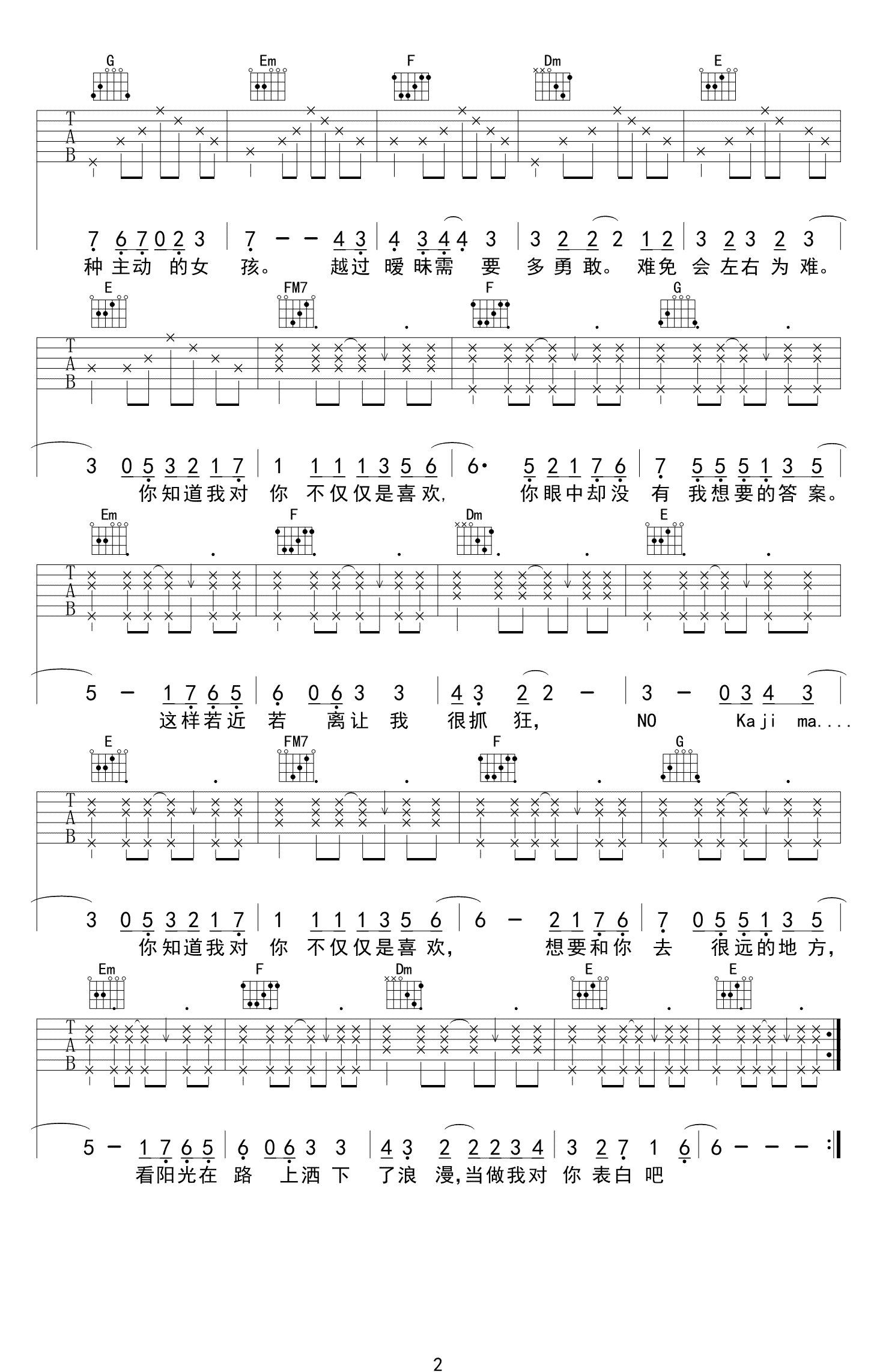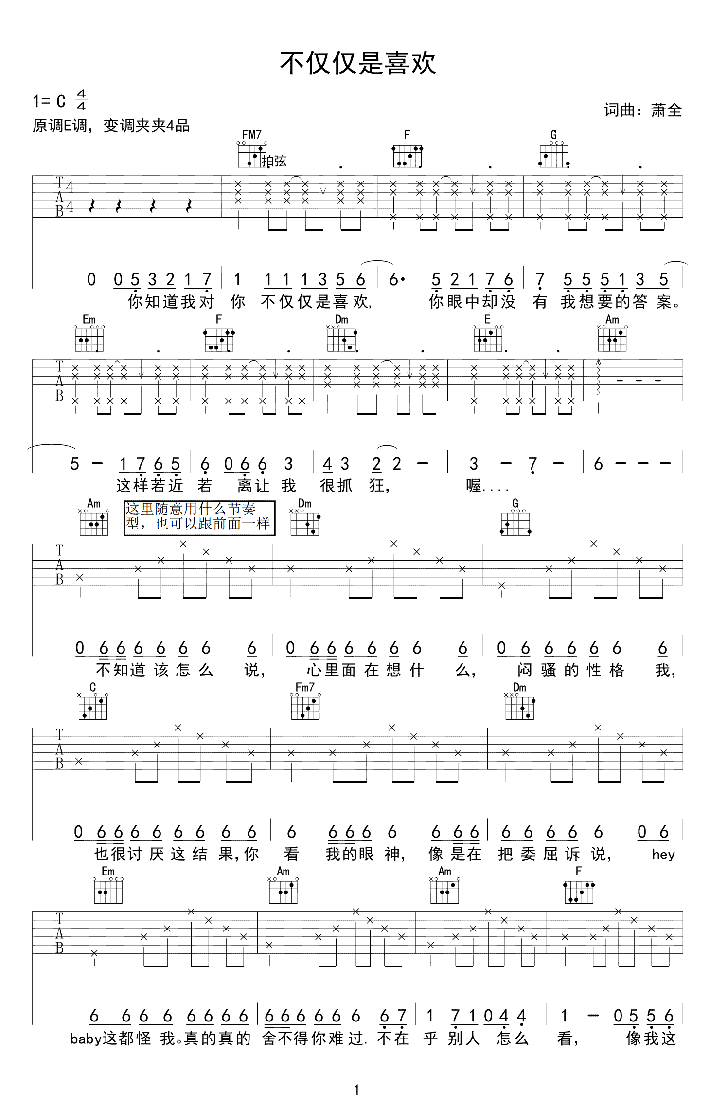 吉他谱 | 热门弹唱《不仅仅是喜欢》