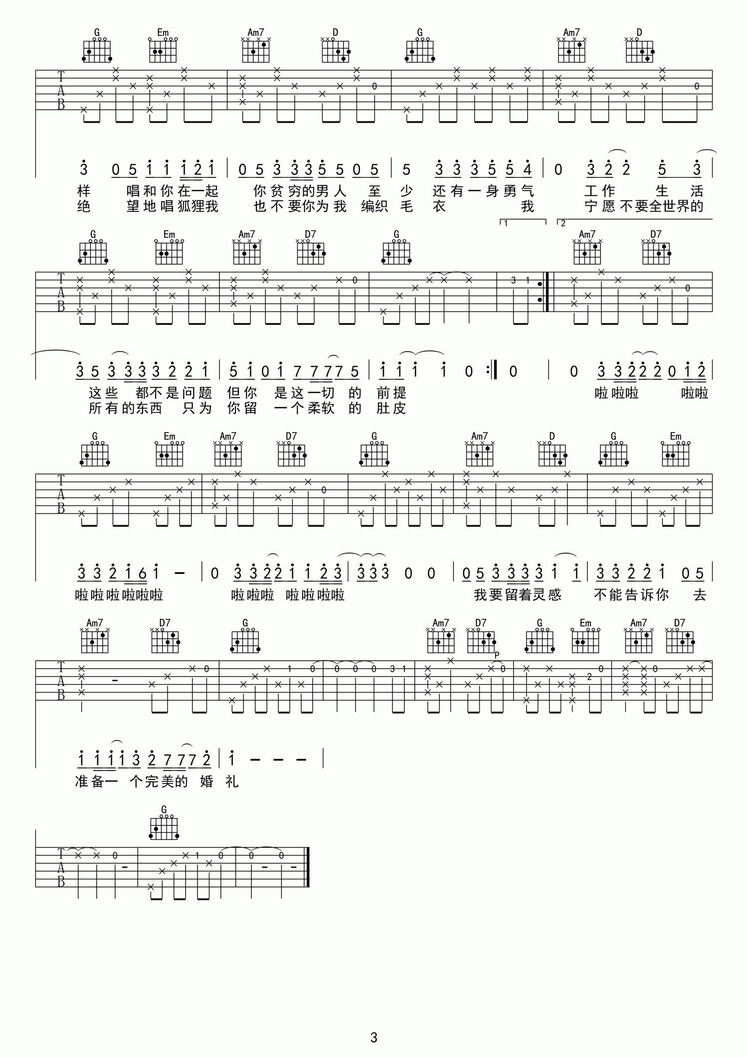 男女吉他谱