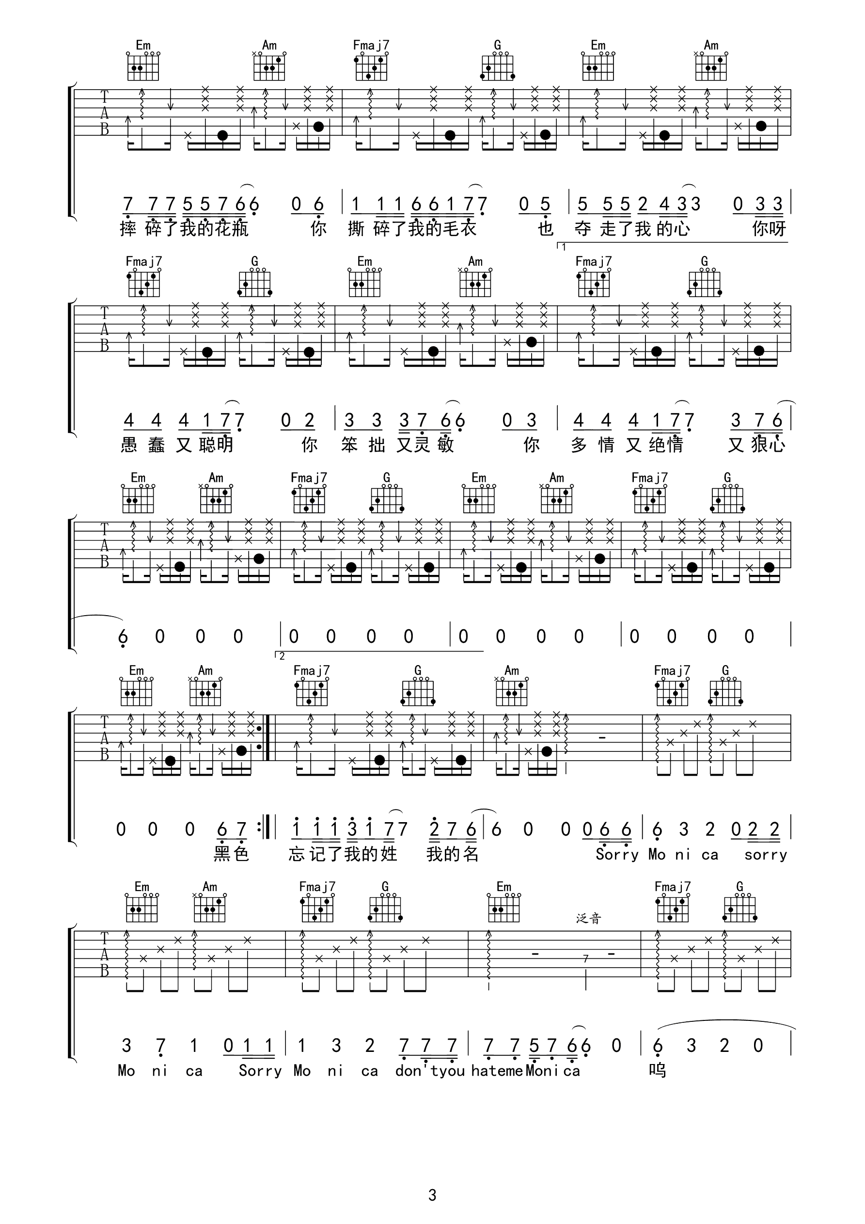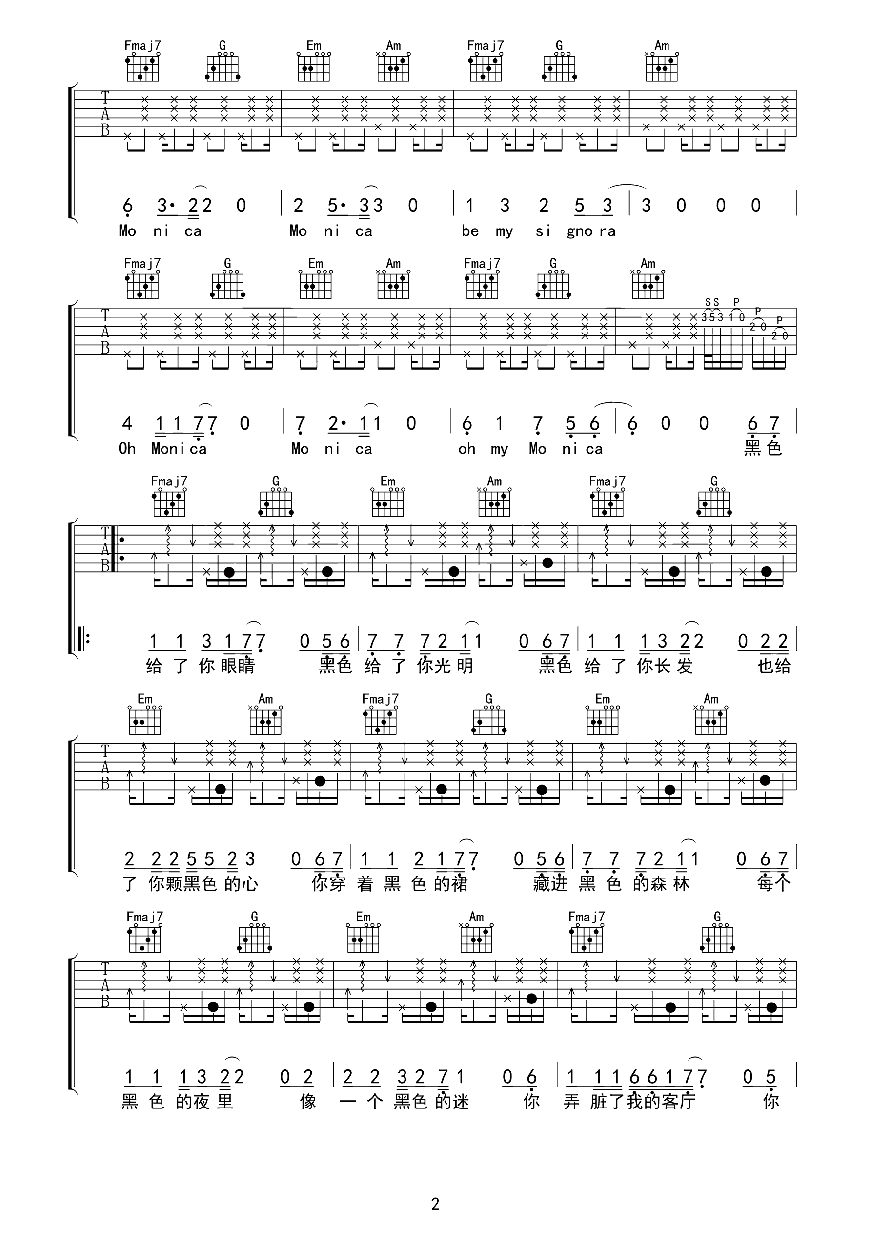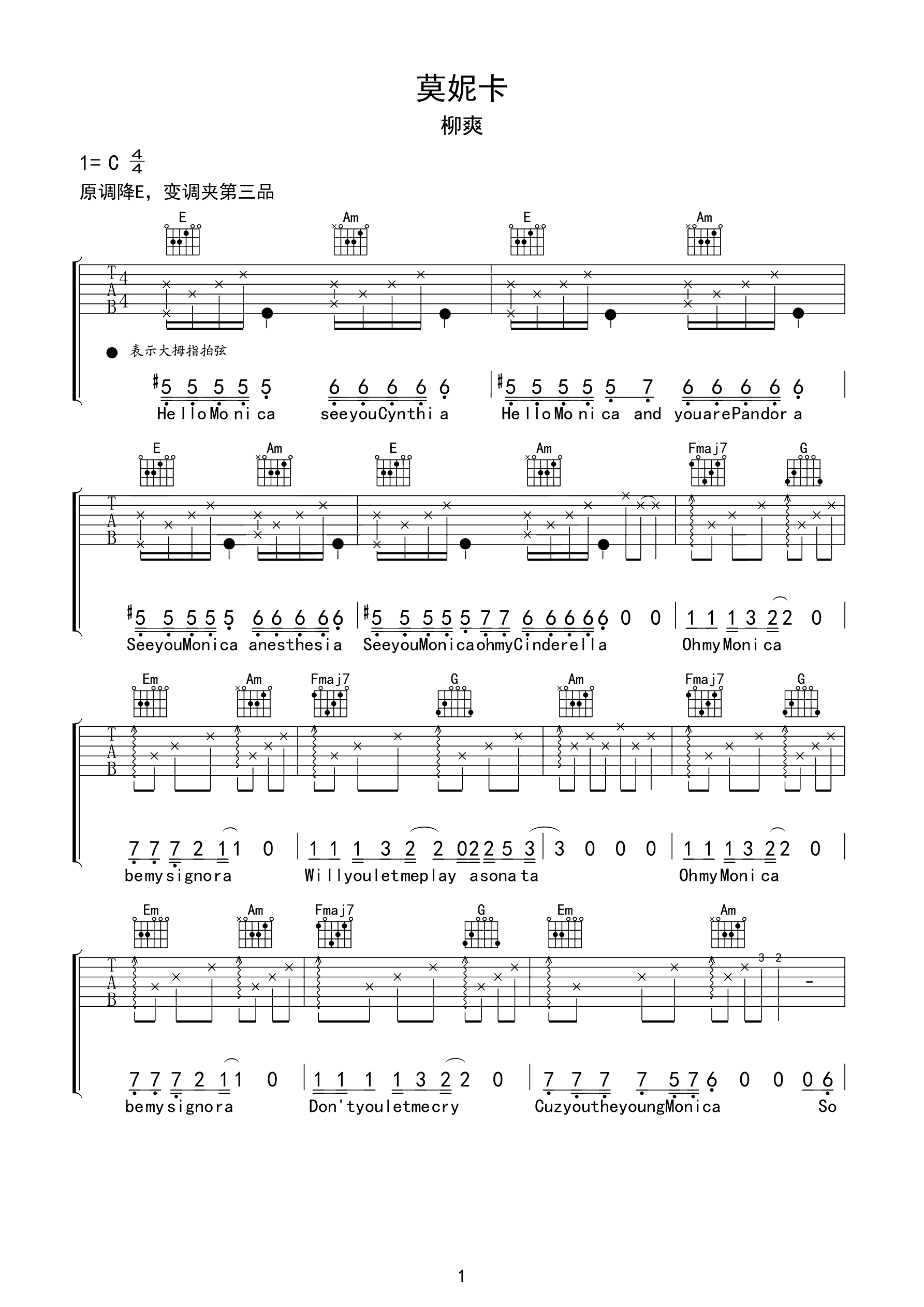 吉他谱 | 热门弹唱《莫妮卡》