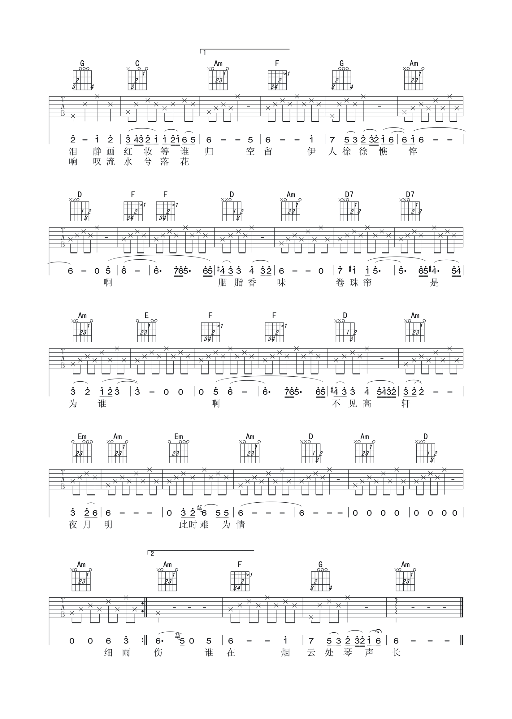 吉他谱 | 热门弹唱《卷珠帘》