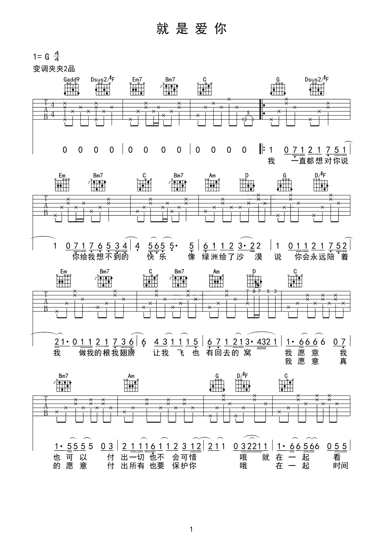 和你吉他谱 余佳运 C调弹唱谱 高清六线