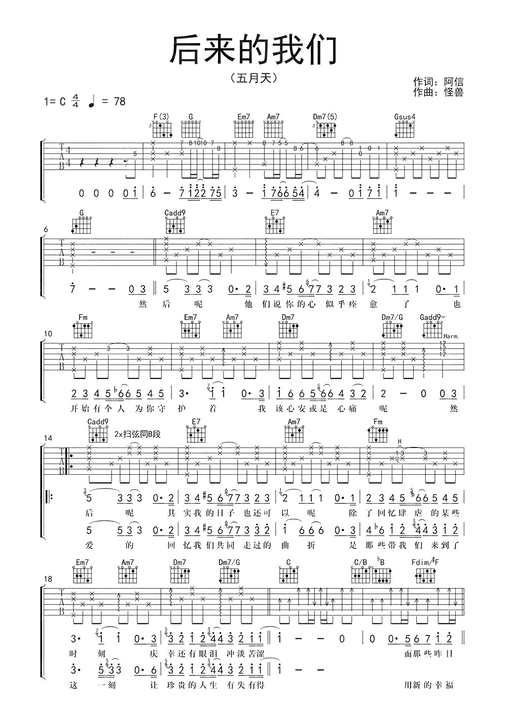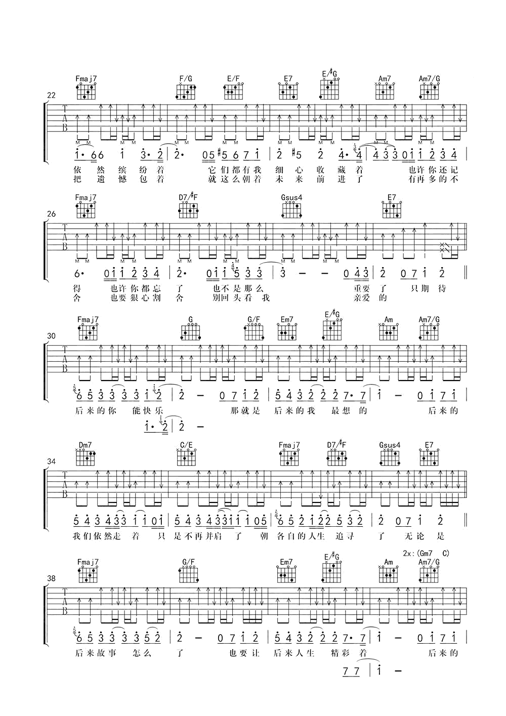 吉他谱 | 热门弹唱《后来的我们》