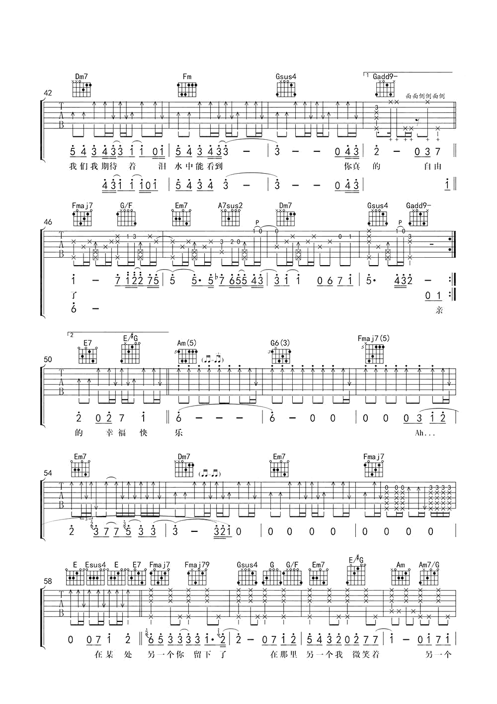 事关孤独吉他谱_马良_弹唱六线谱_高清