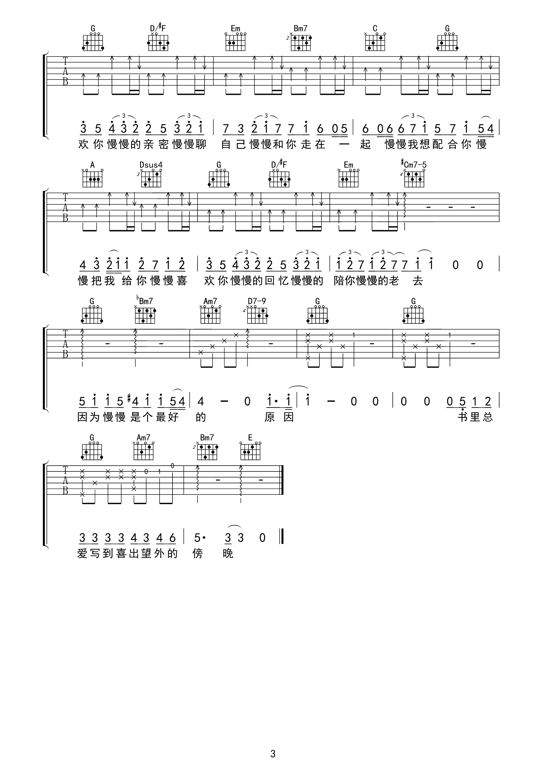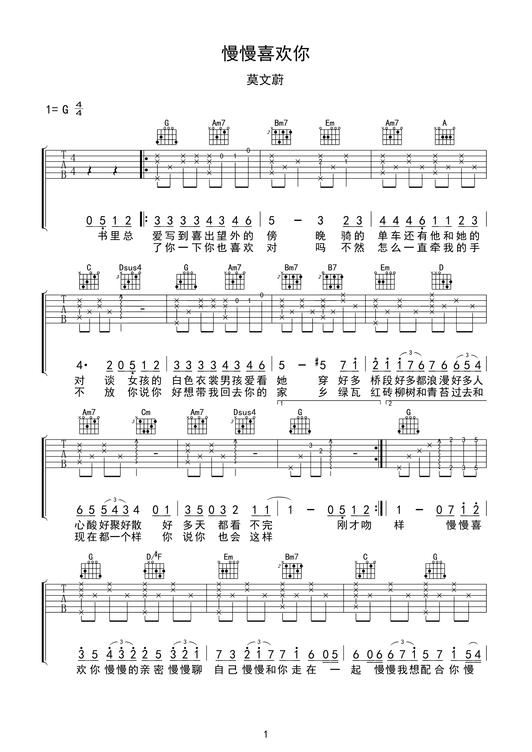 吉他谱 | 热门弹唱《慢慢喜欢你》