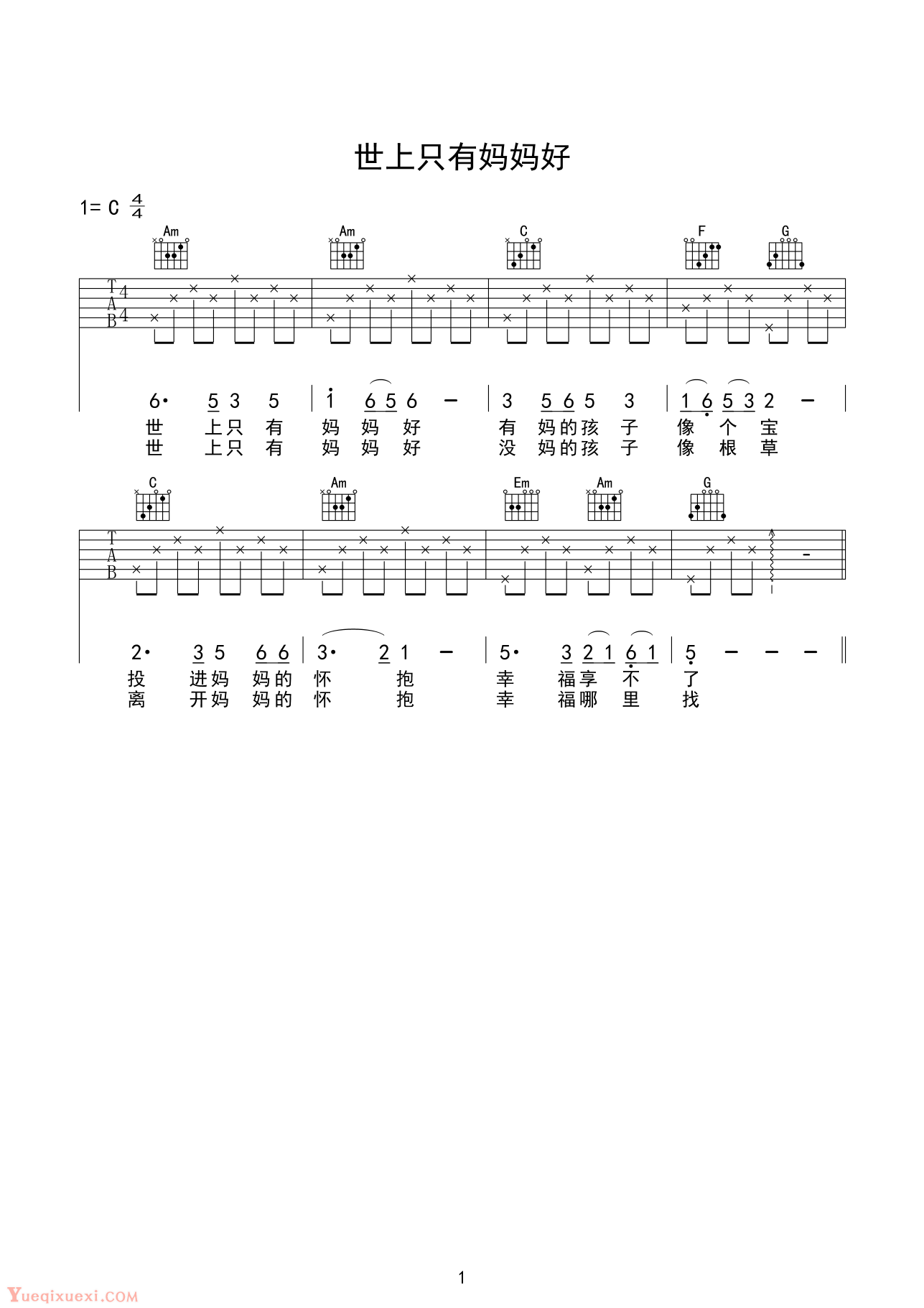 吉他谱 | 入门弹唱《世上只有妈妈好》