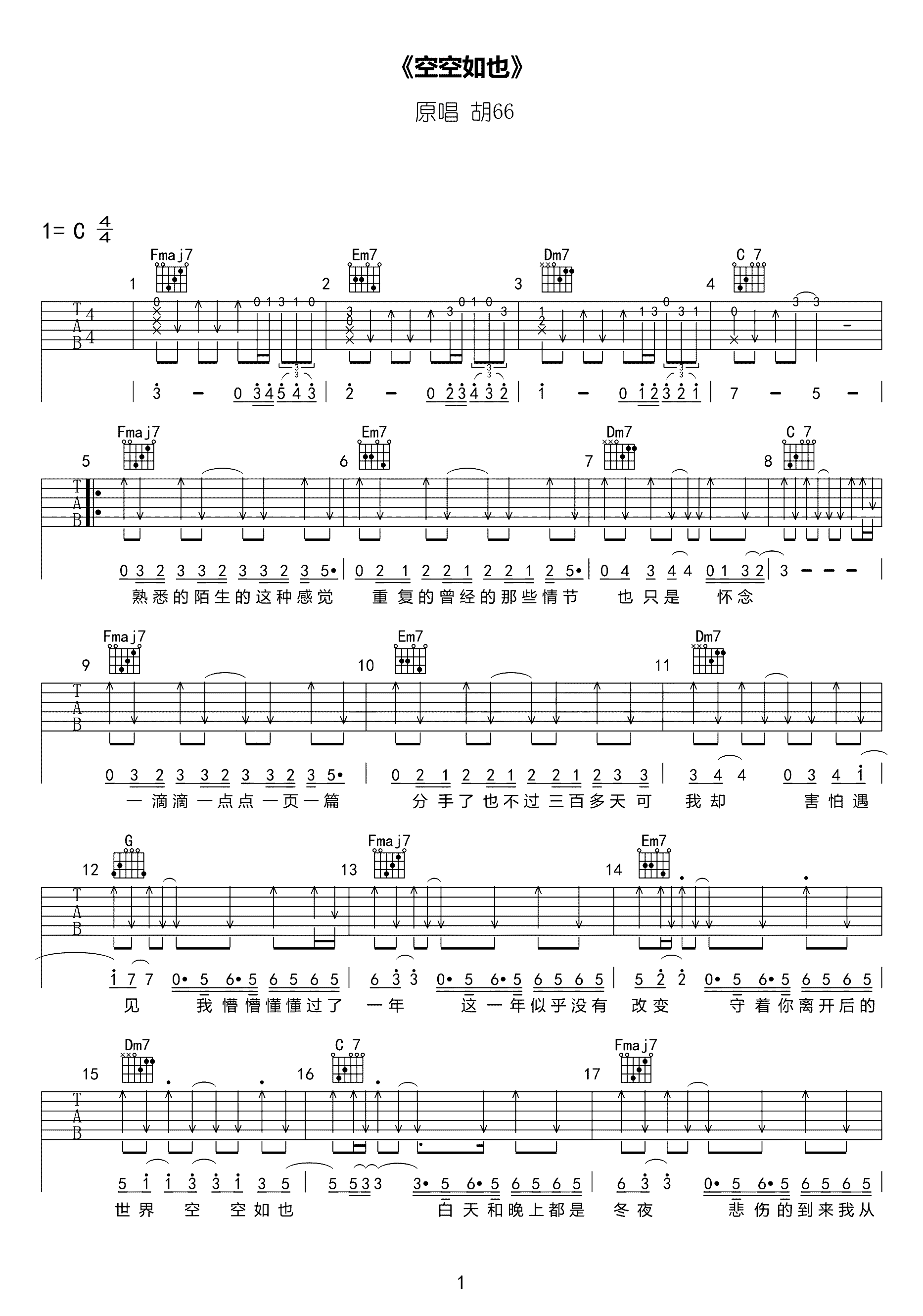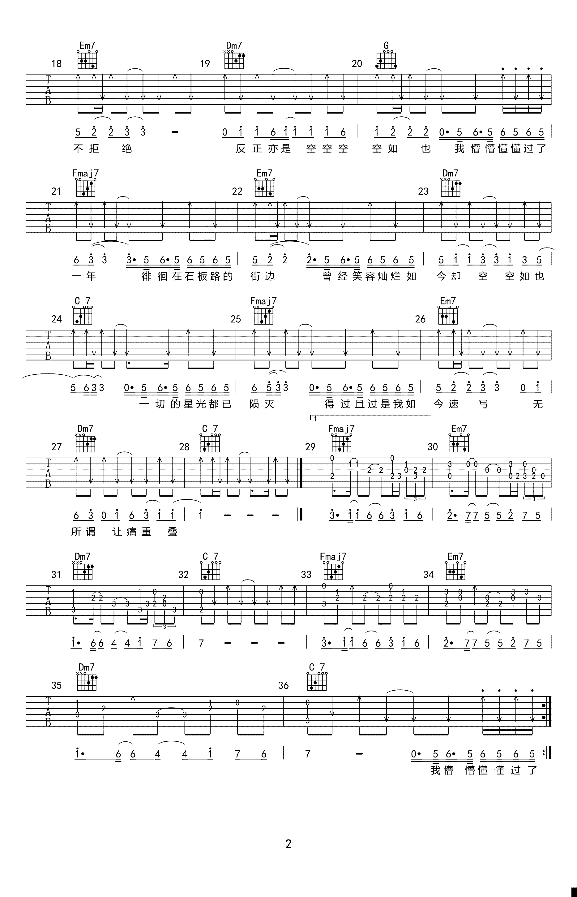 吉他谱 | 热门弹唱《空空如也》