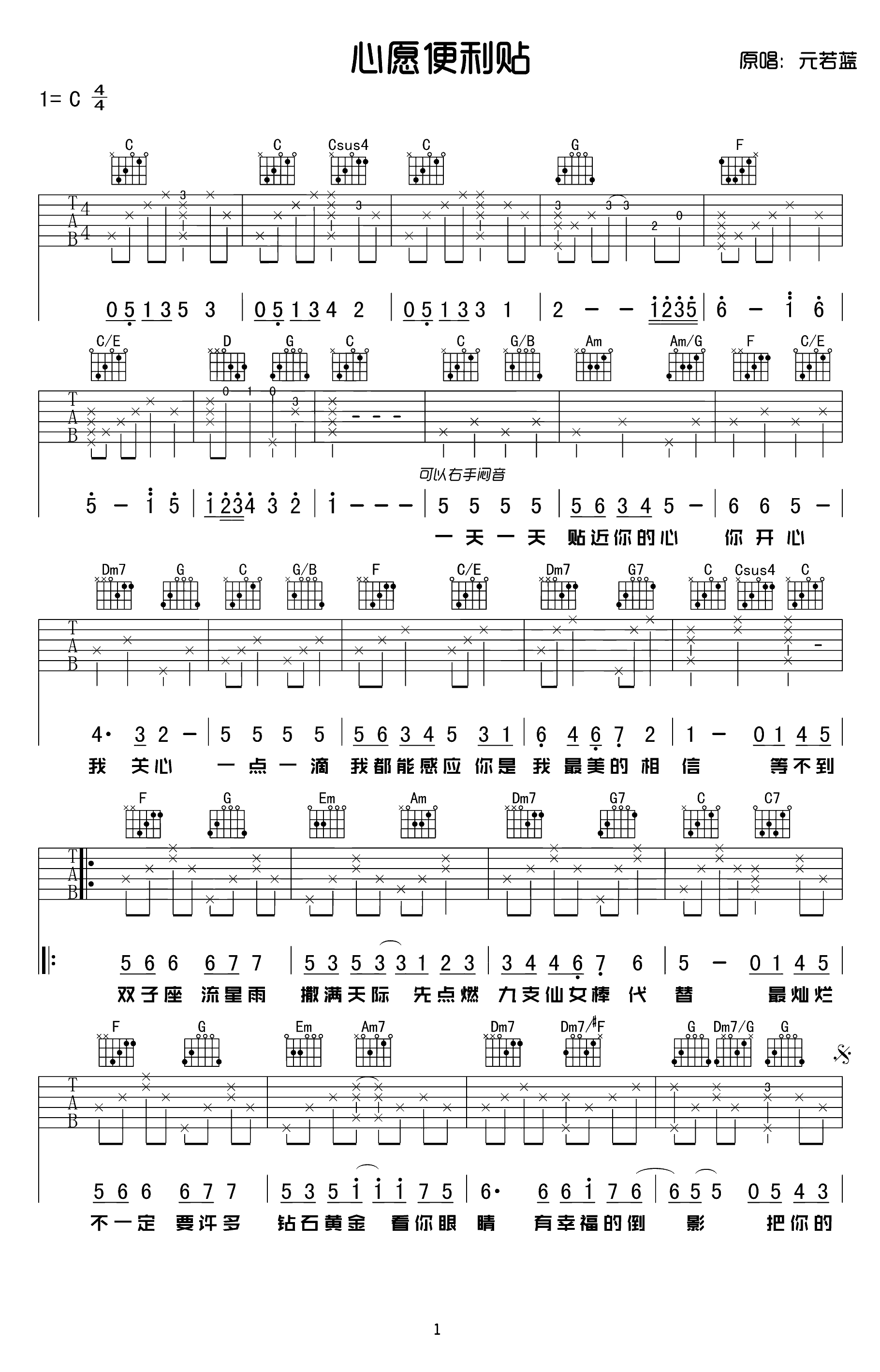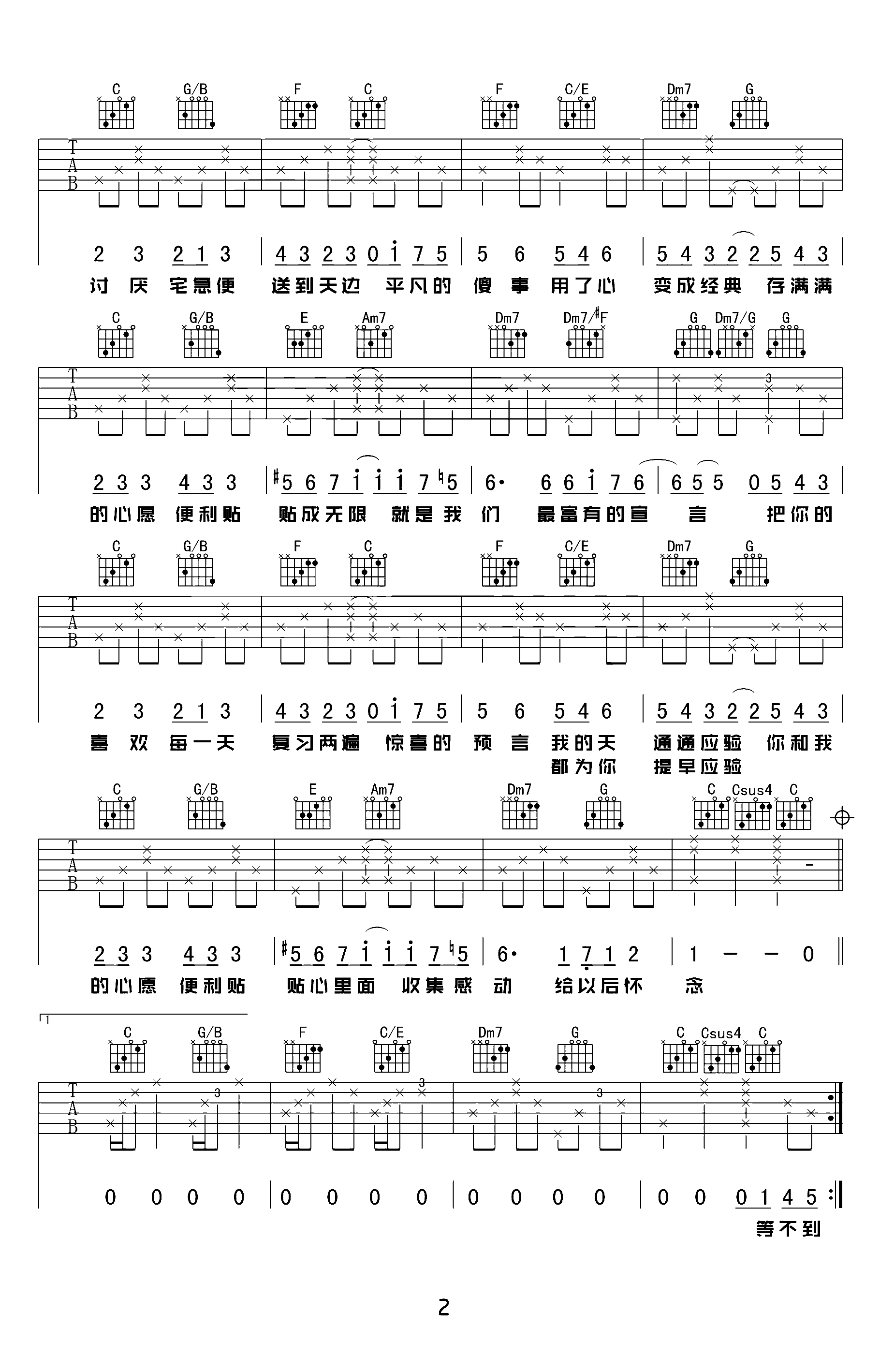 吉他谱 | 热门弹唱《心愿便利贴》