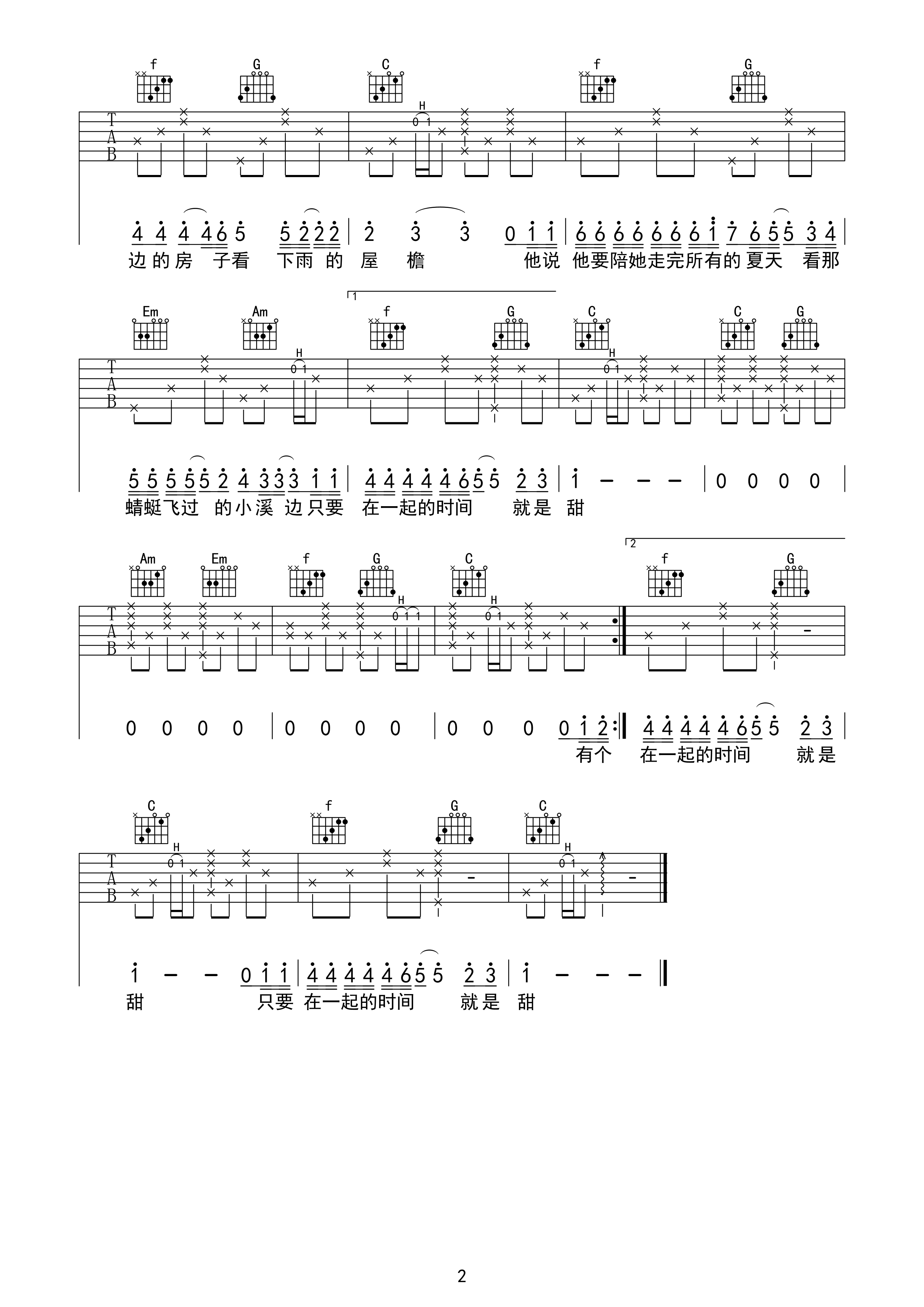 吉他谱 | 热门弹唱《他说他要陪她走完所有的夏天》