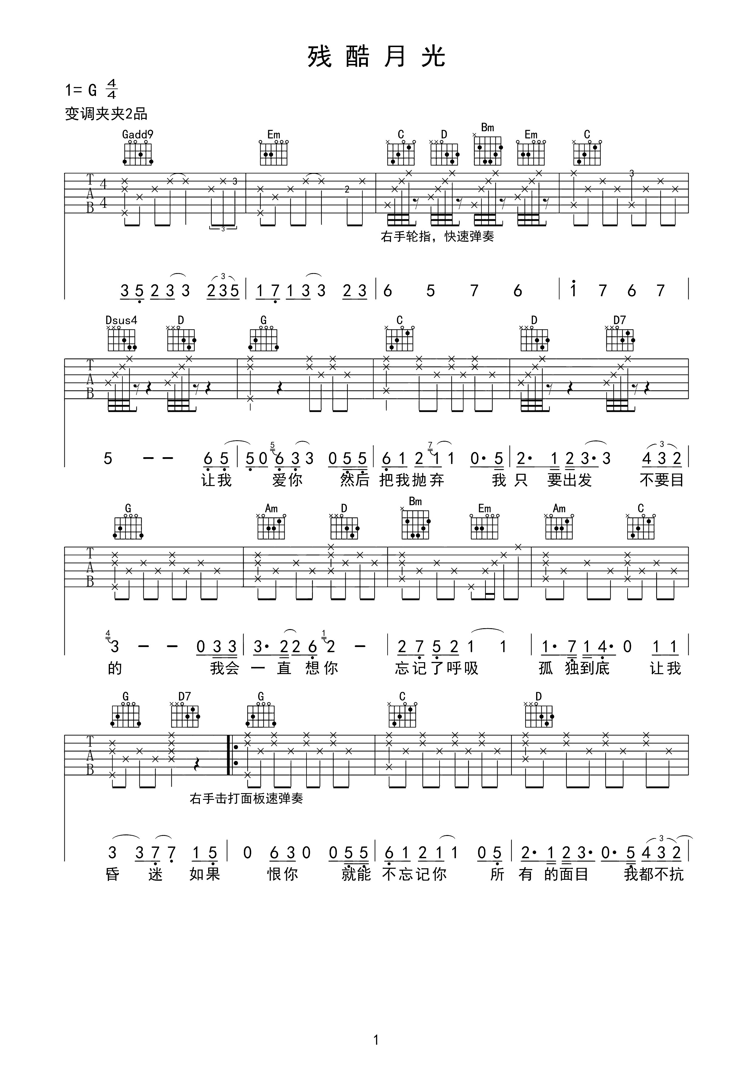 吉他谱 | 热门弹唱《残酷月光》