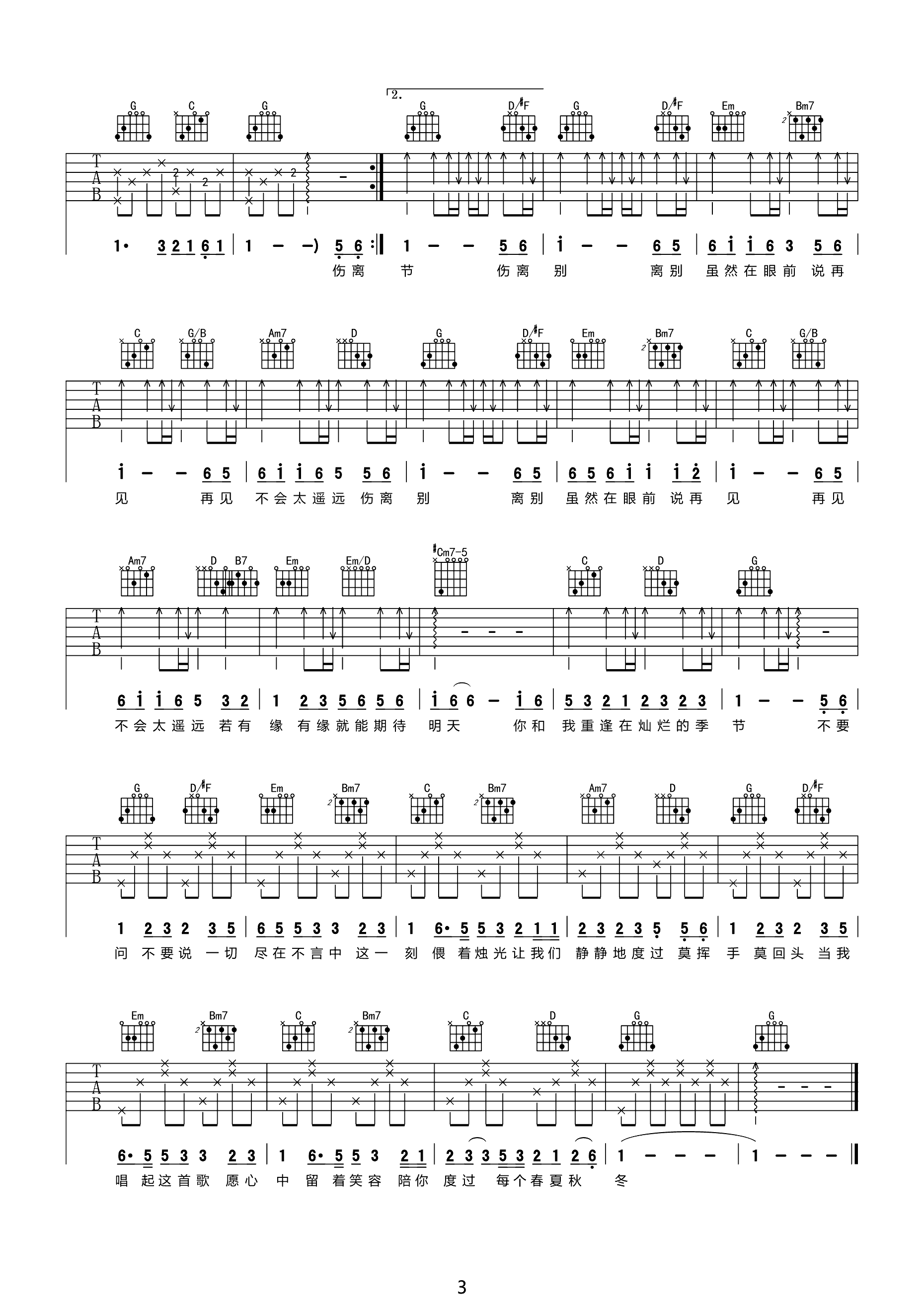 陌生女人的告别吉他谱 蒋 大冰的小屋