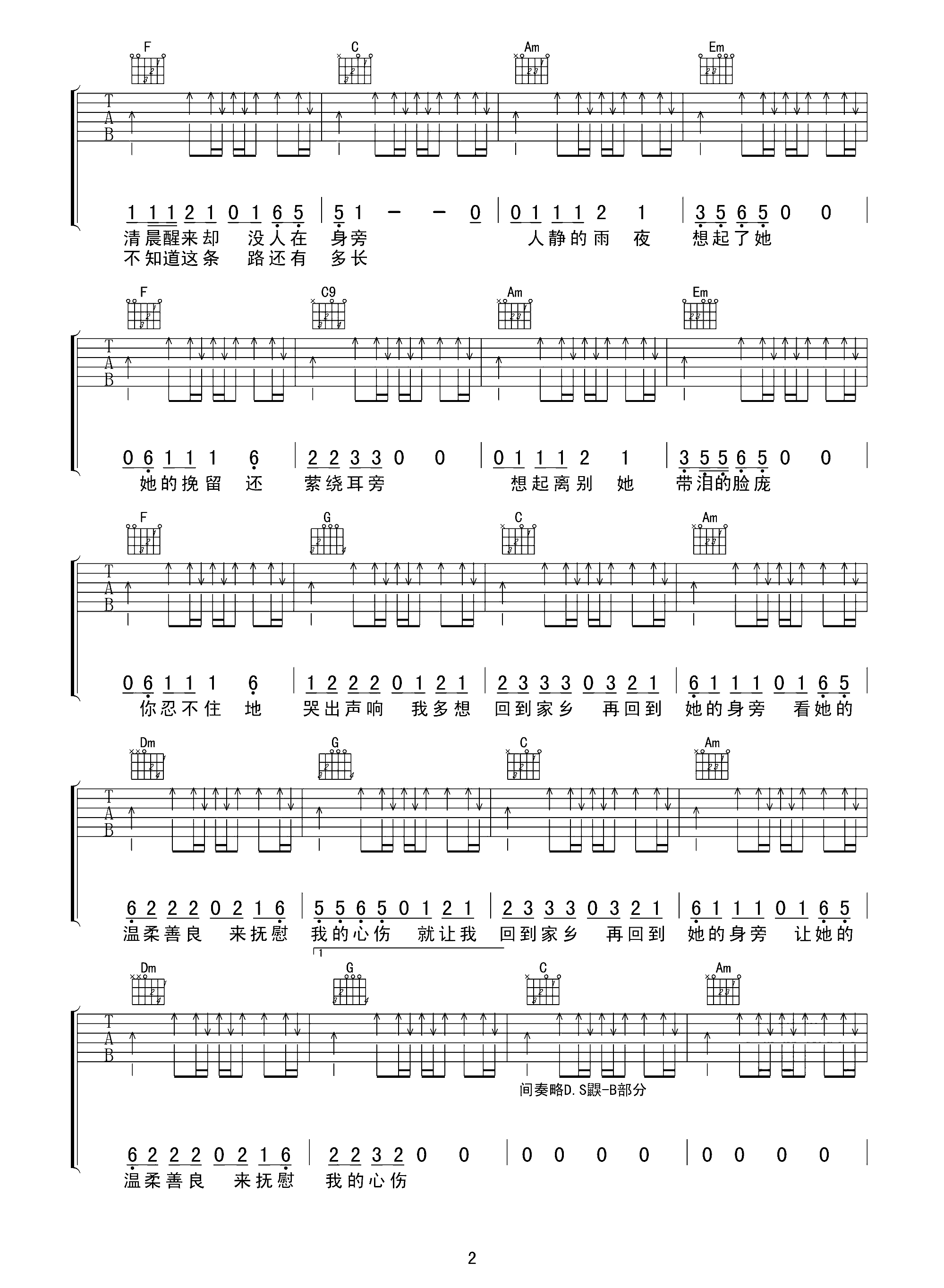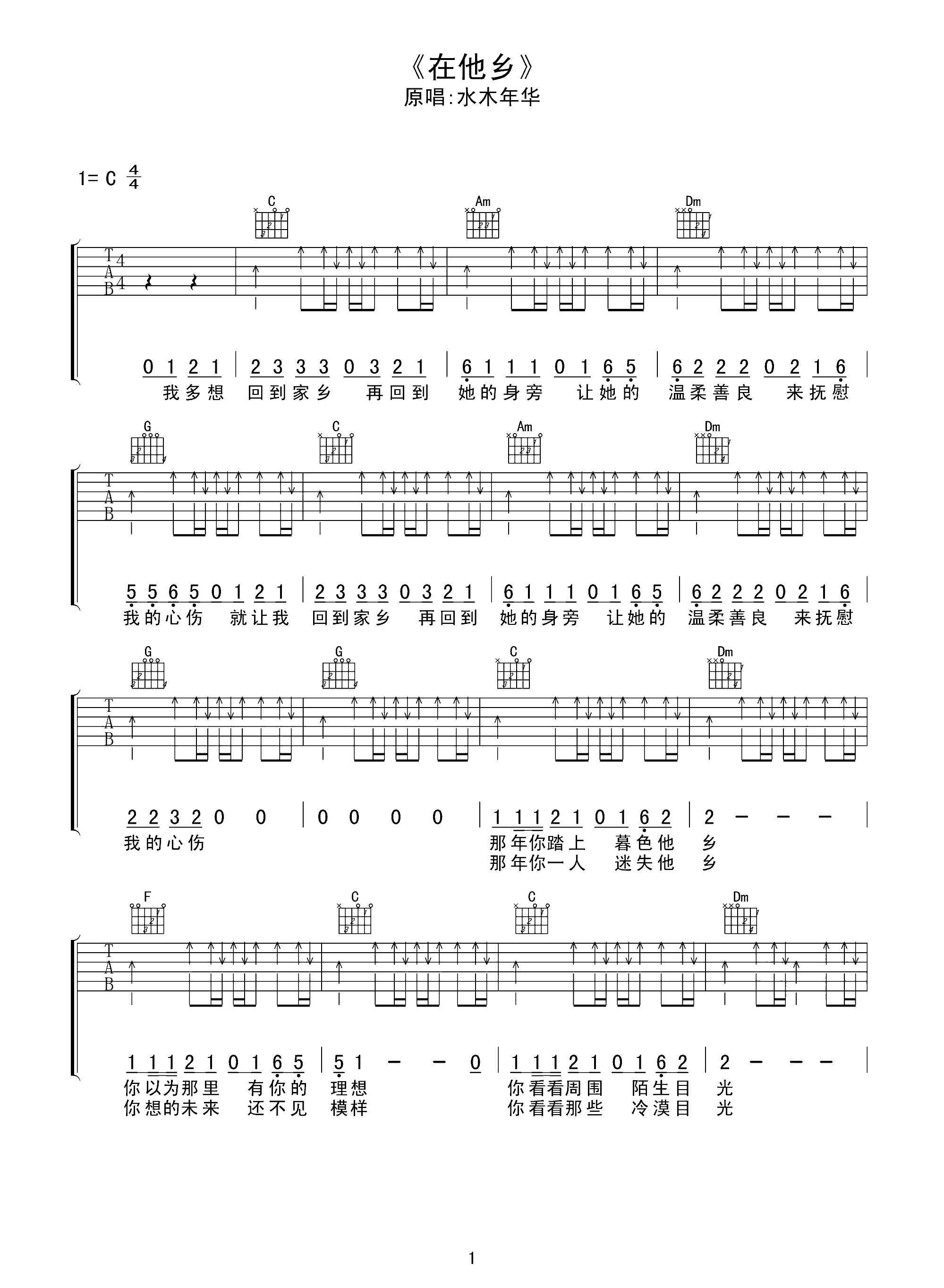 吉他谱 | 热门弹唱《在他乡》