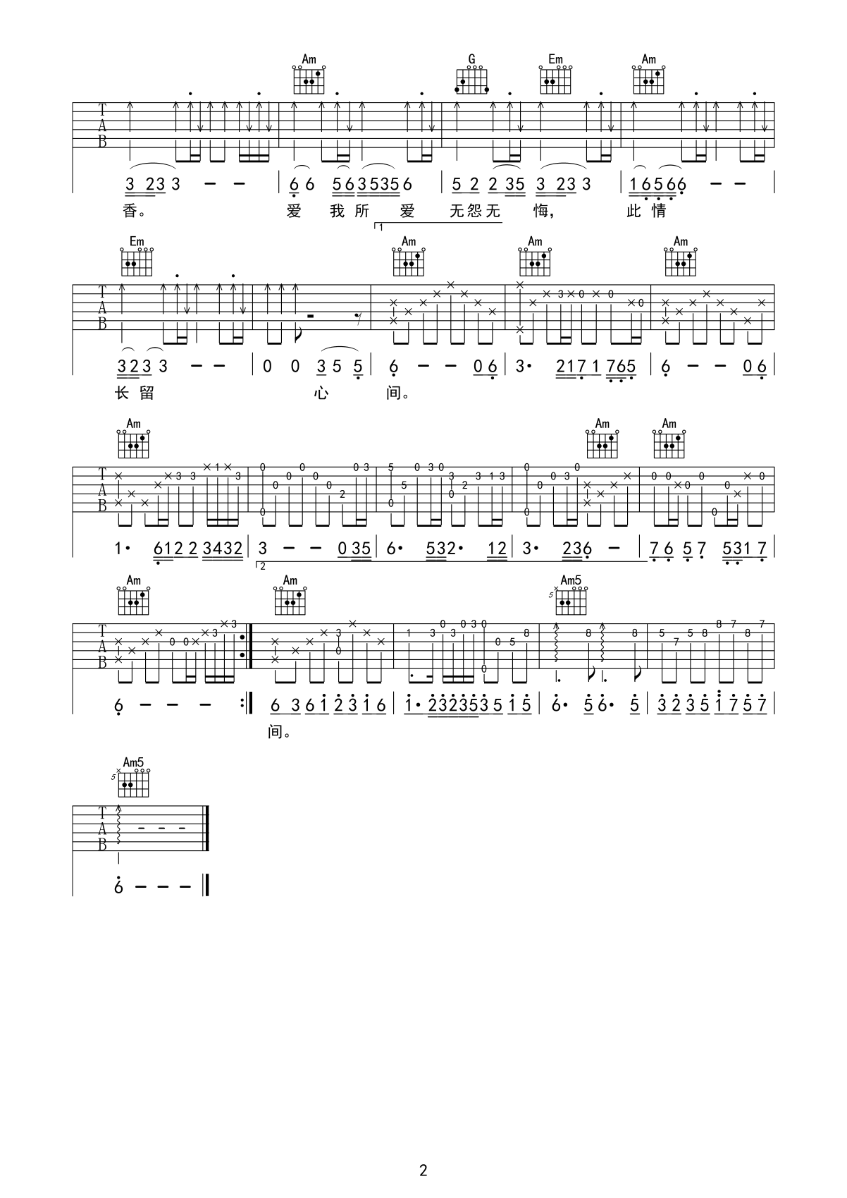 写不完的爱吉他谱