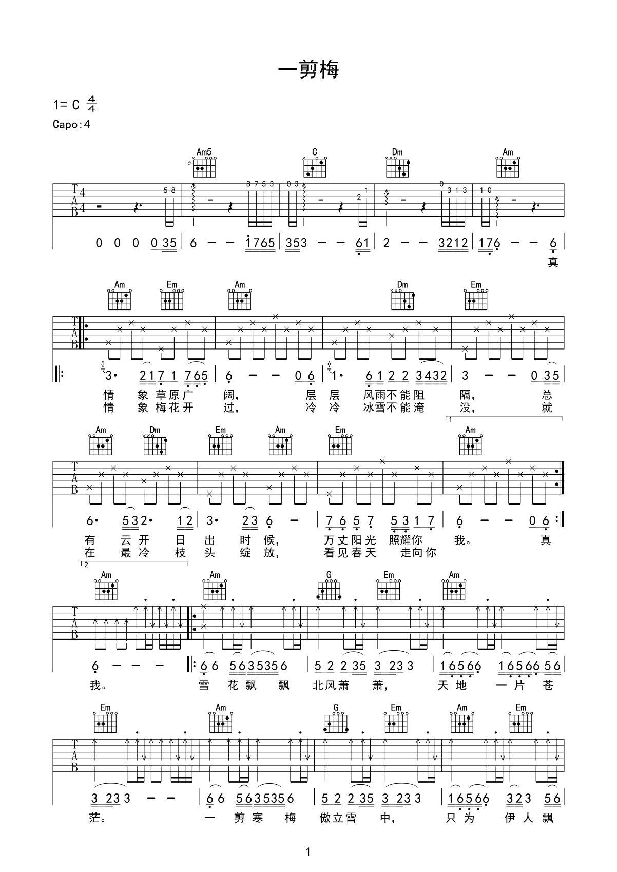 吉他谱 | 热门弹唱《一剪梅》