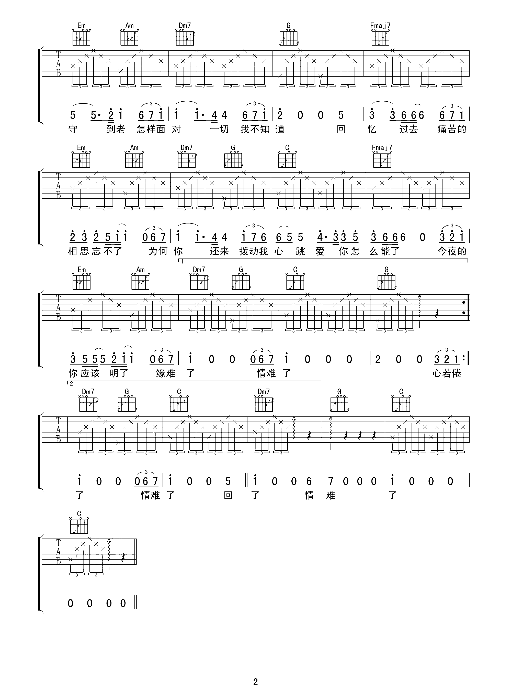 爱一个人好难啊吉他谱