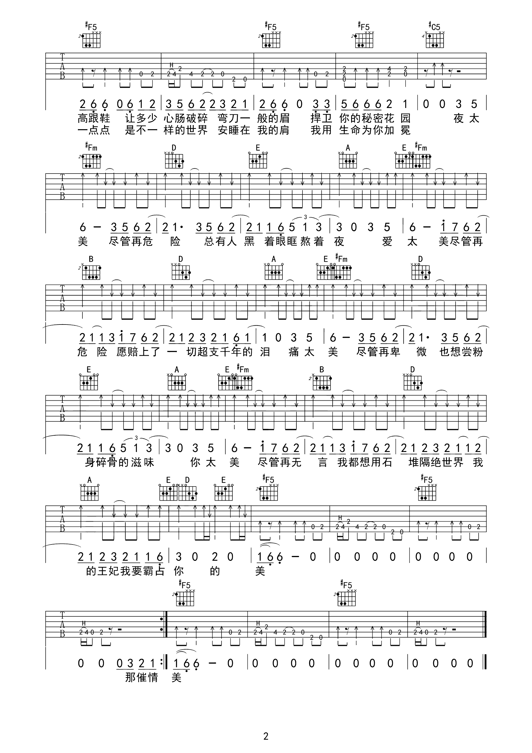 吉他谱 | 热门弹唱《王妃》