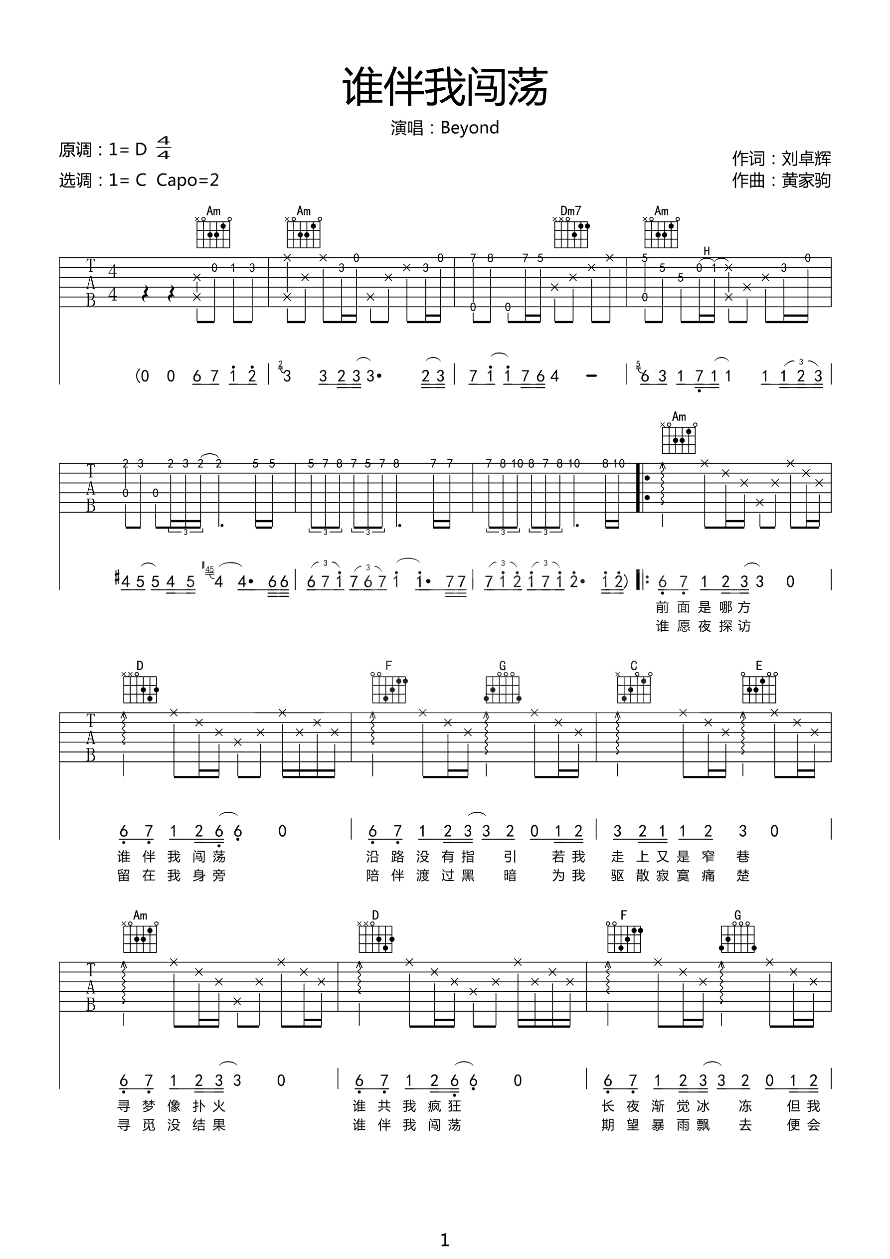 吉他谱 | 热门弹唱《谁伴我闯荡》