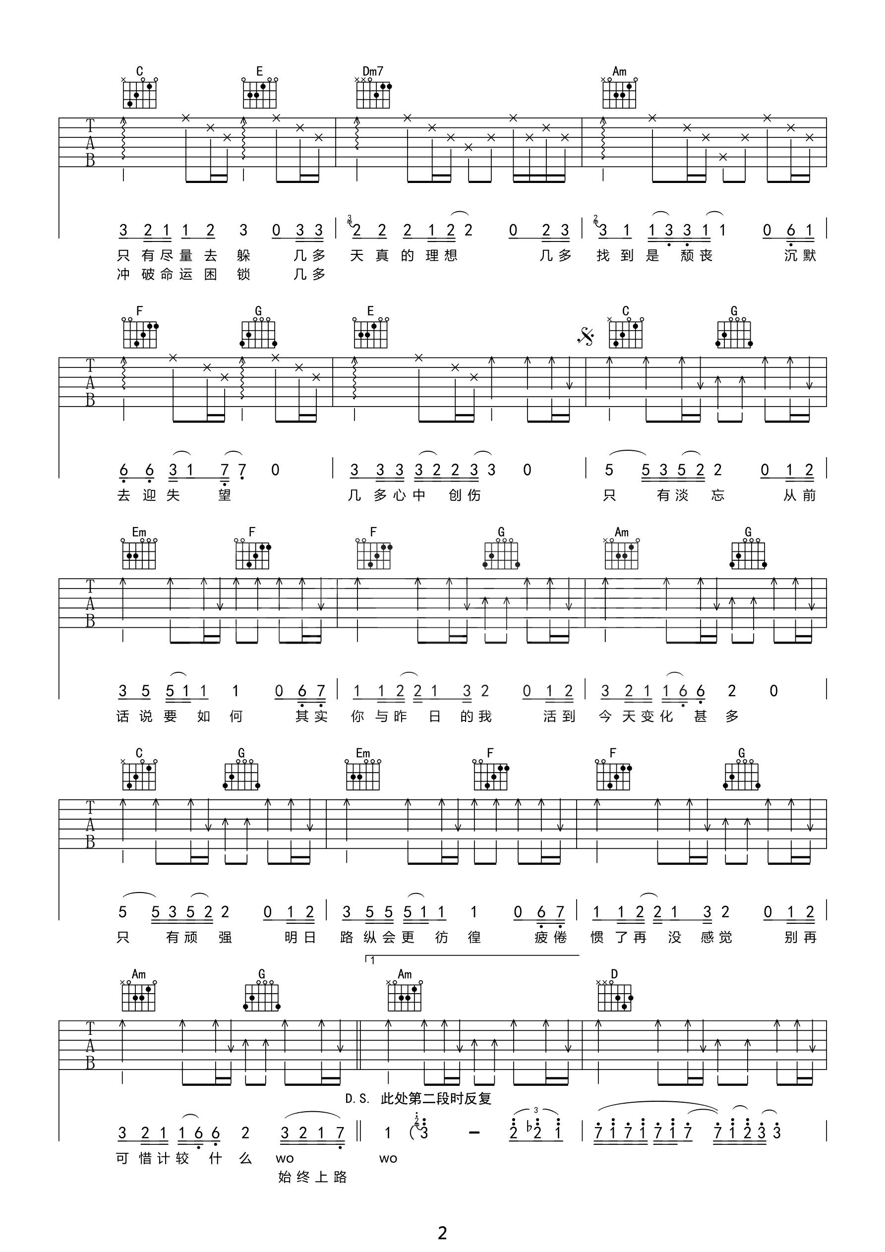 当我要走的时候吉他谱 陈硕子 C调指法