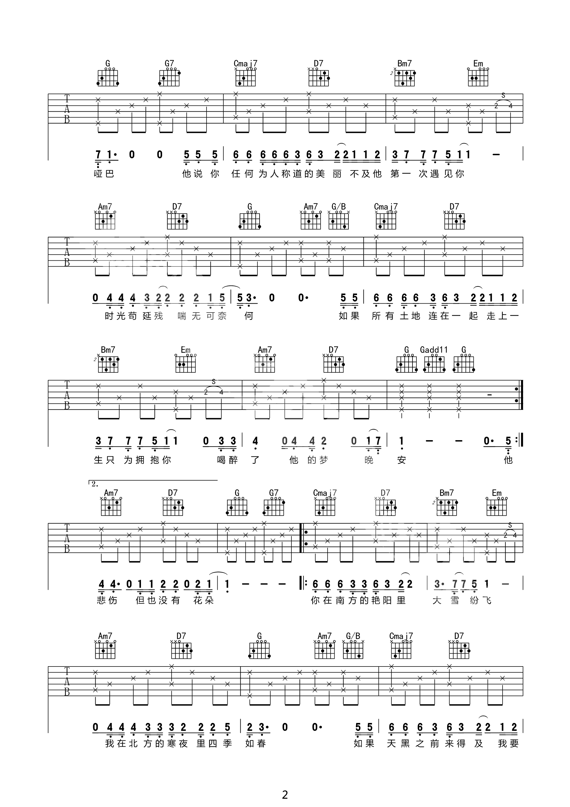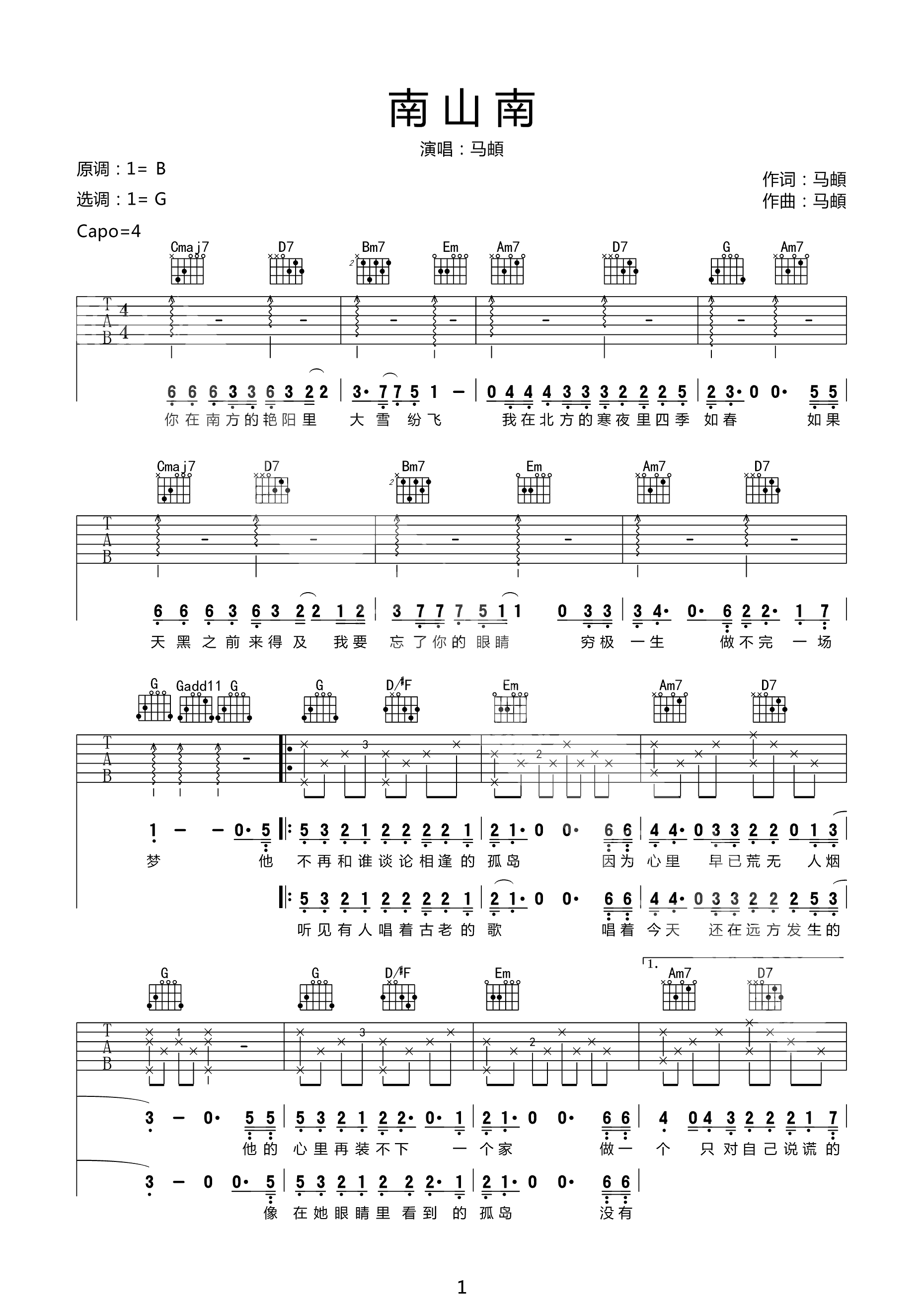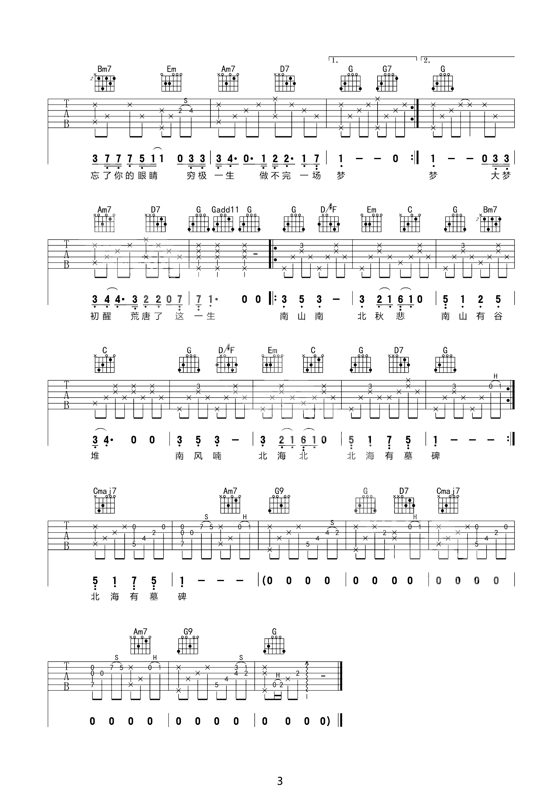 吉他谱 | 热门弹唱《南山南》