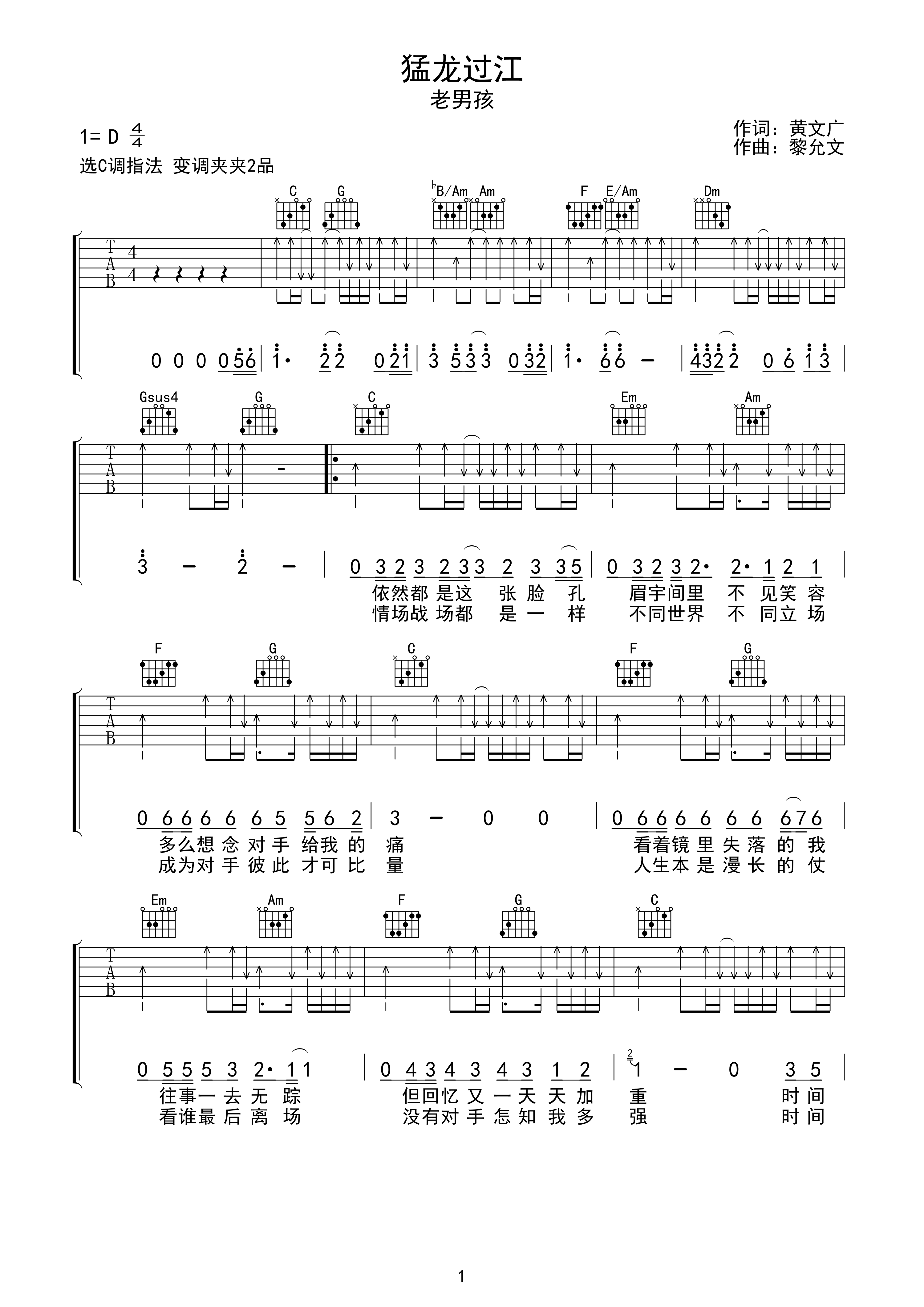吉他谱 | 热门弹唱《猛龙过江》